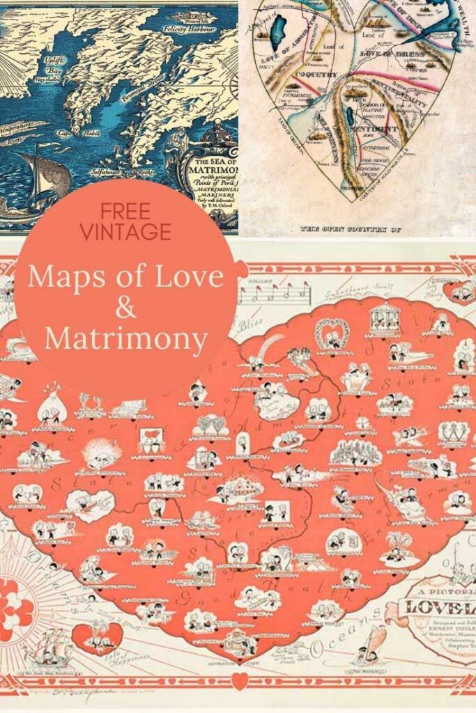 I hope you have enjoyed these fun vintage maps of love and matrimony. There are some vintage happy Valentine’s images here and some printable vintage Valentine’s cards that you might also like to look at.