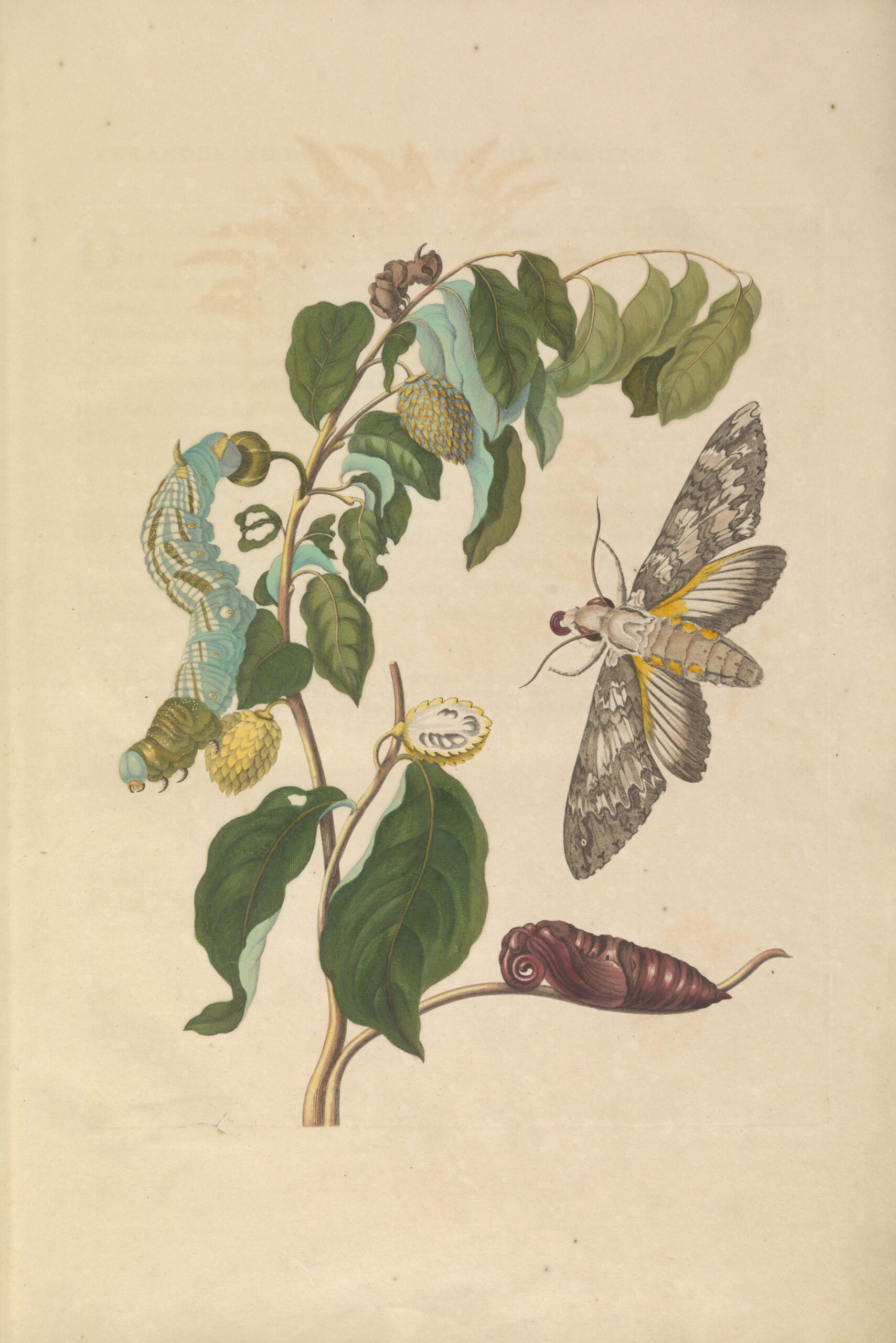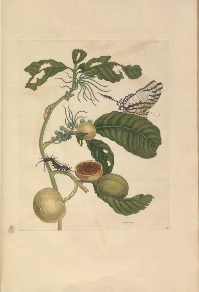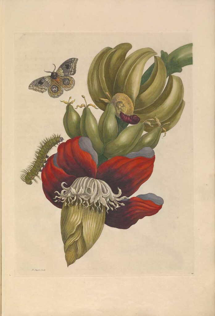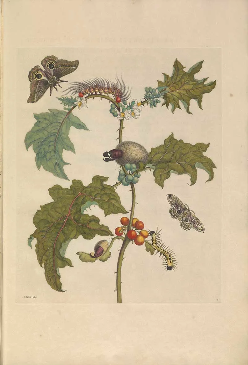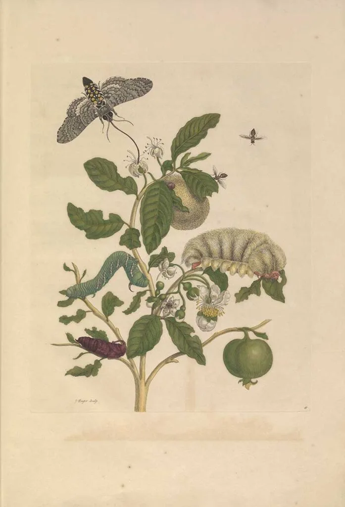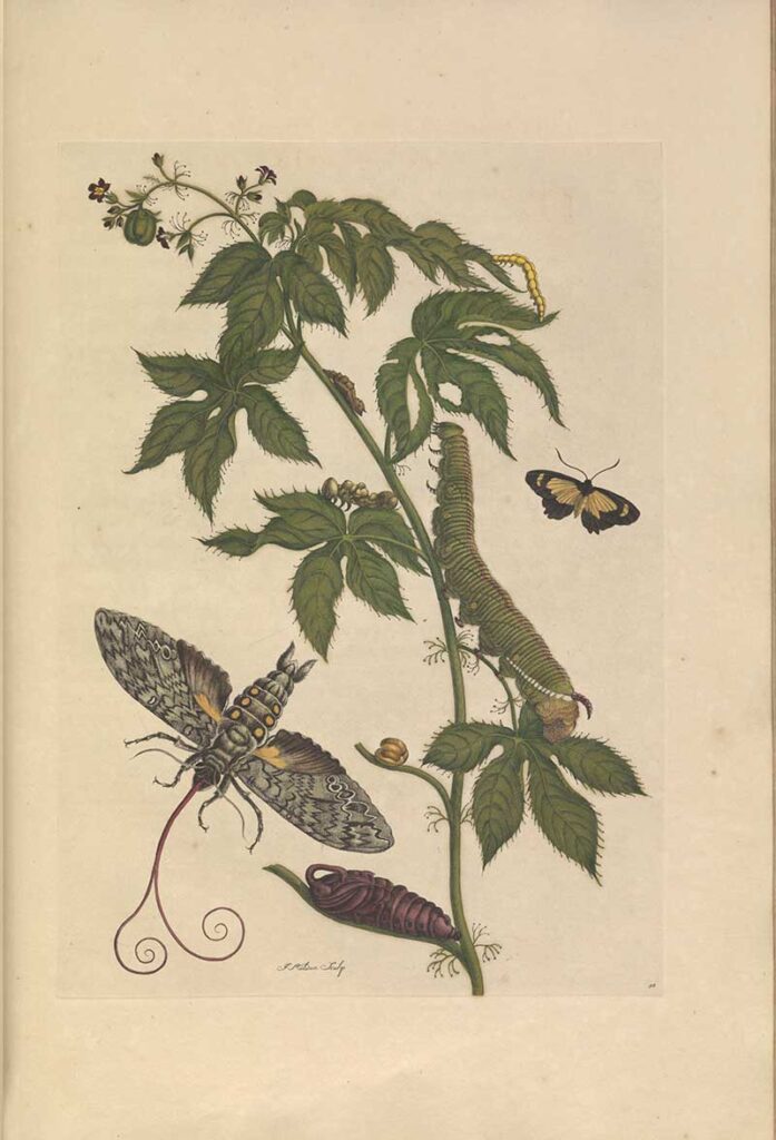 Merian’s depictions of metamorphosis were based on her meticulous observations of living creatures and the plants that sustained them.