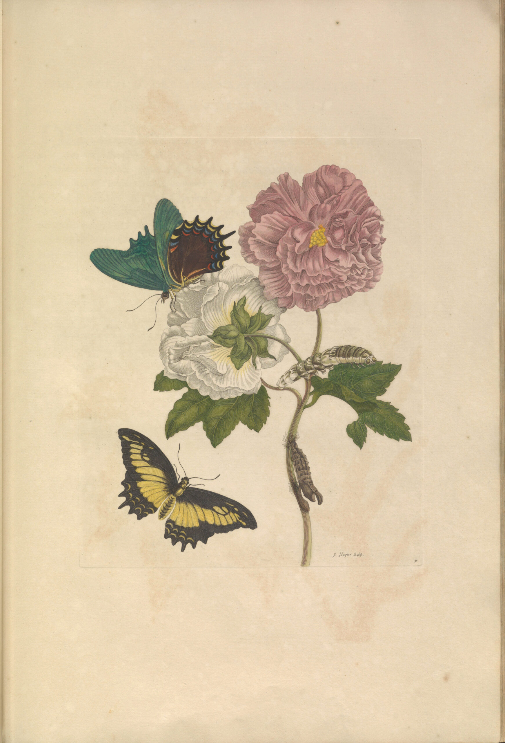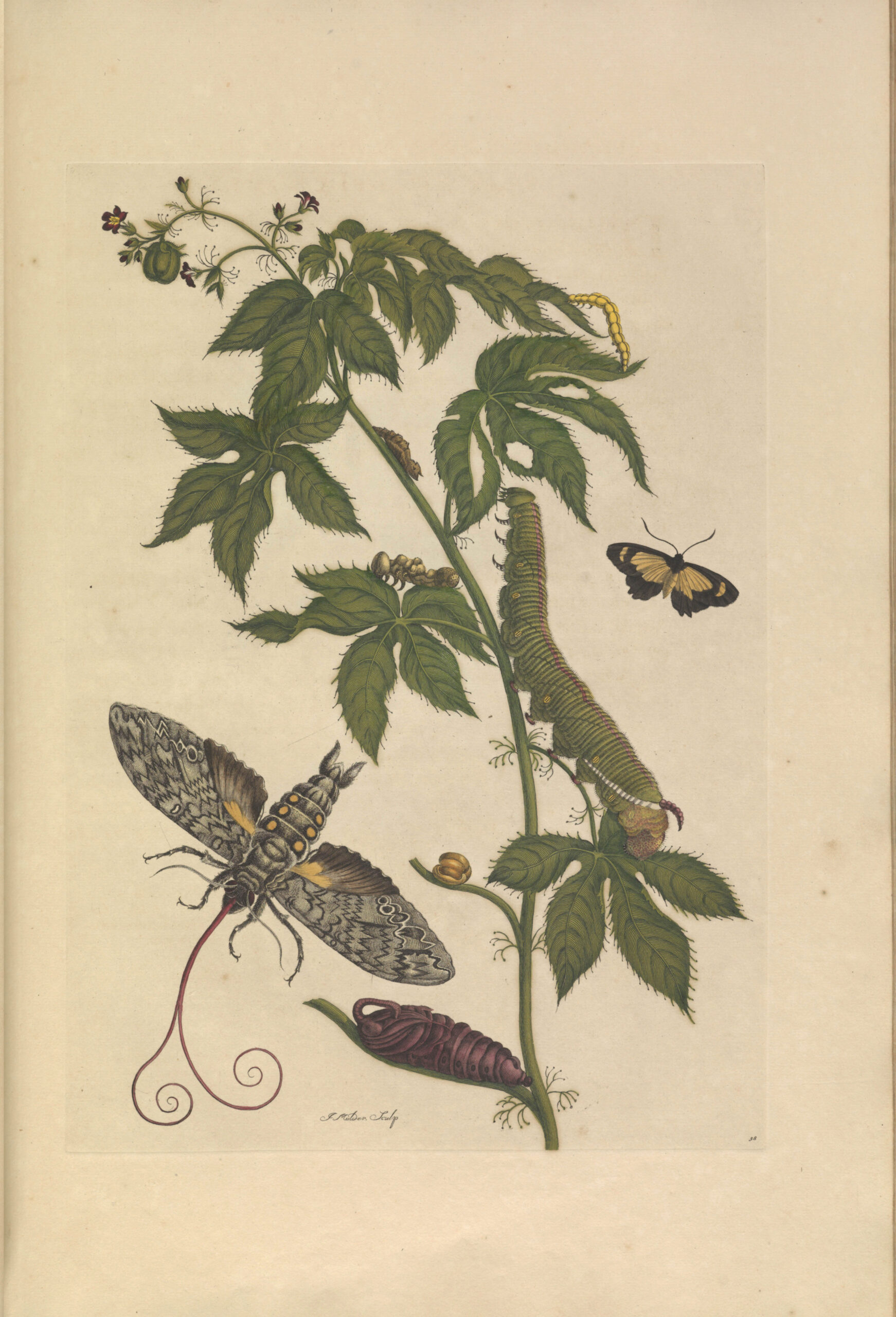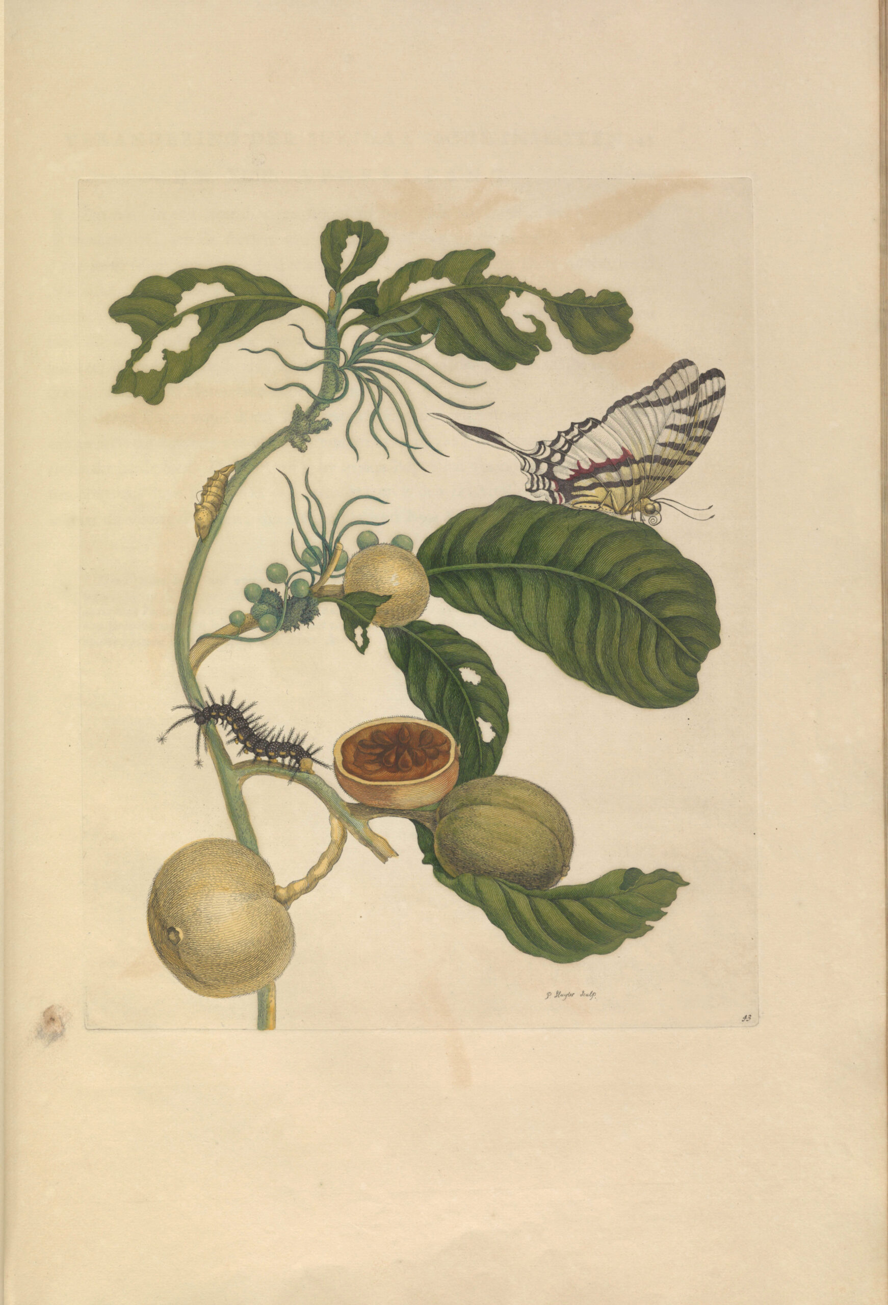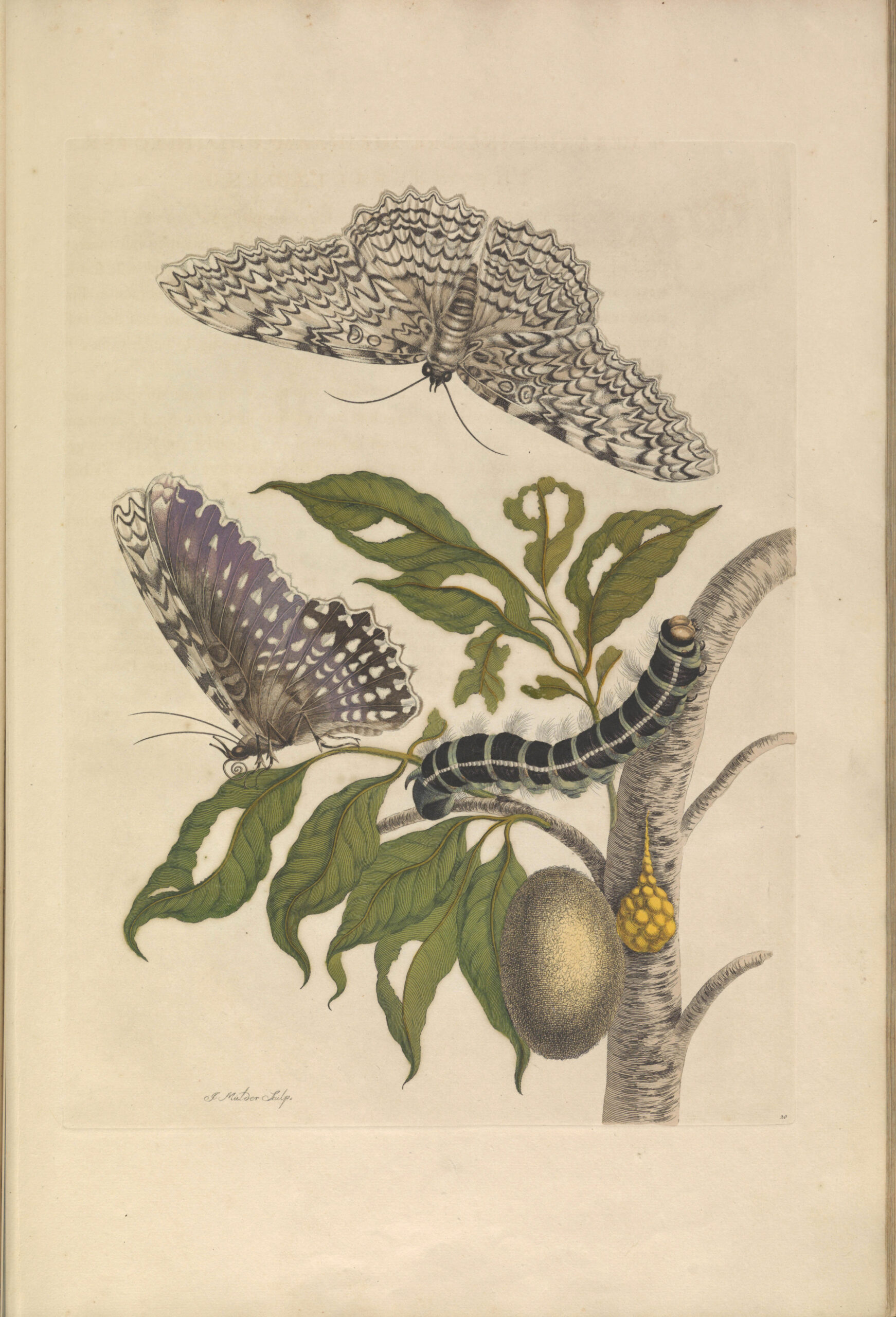 Another Maria Merian print of the full lifecycle of the butterfly. These species with distinct yellow and black caterpillars.