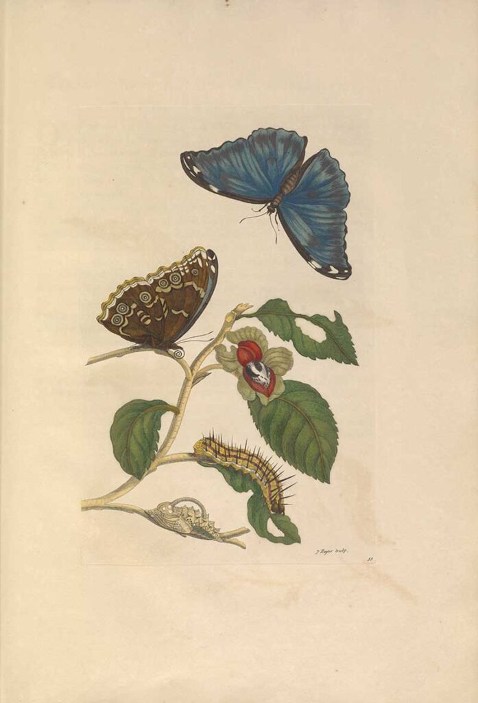 Maria didn’t have much to say about the pomegranate as they were already well known in Europe. But she did describe the blue butterfly as follows: