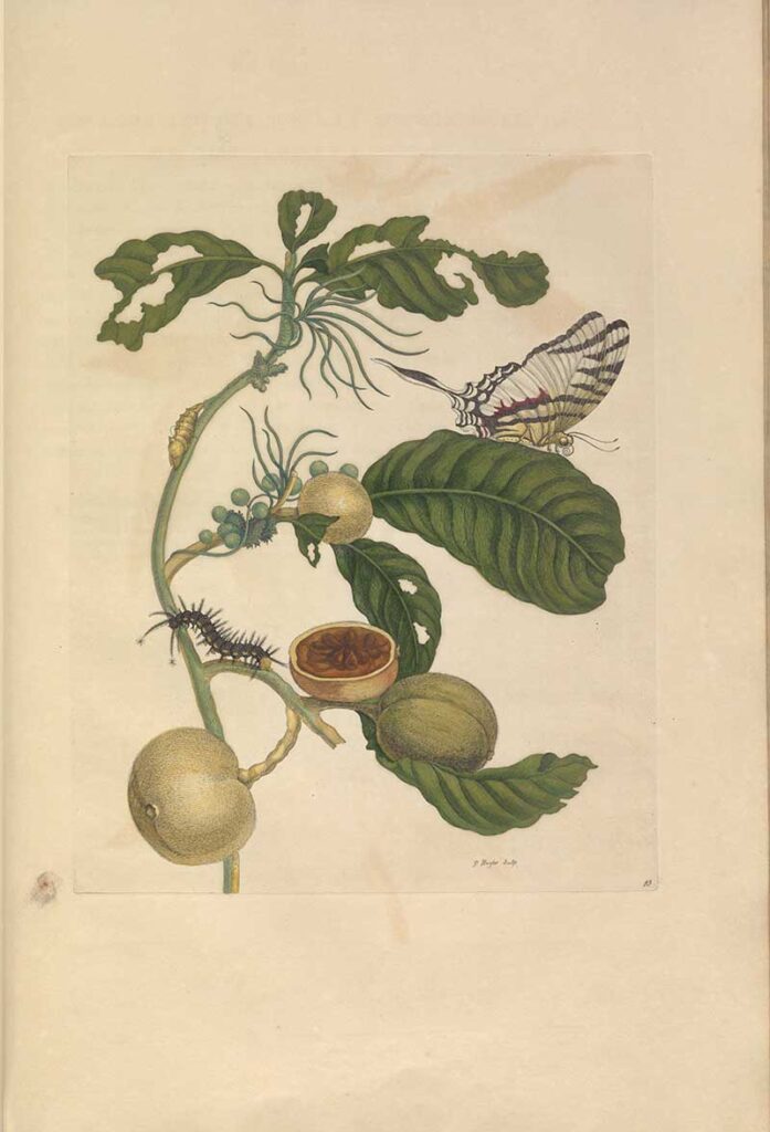 This is how she described the fruit in her book, “Metamorphosis of the Insects of Suriname“: