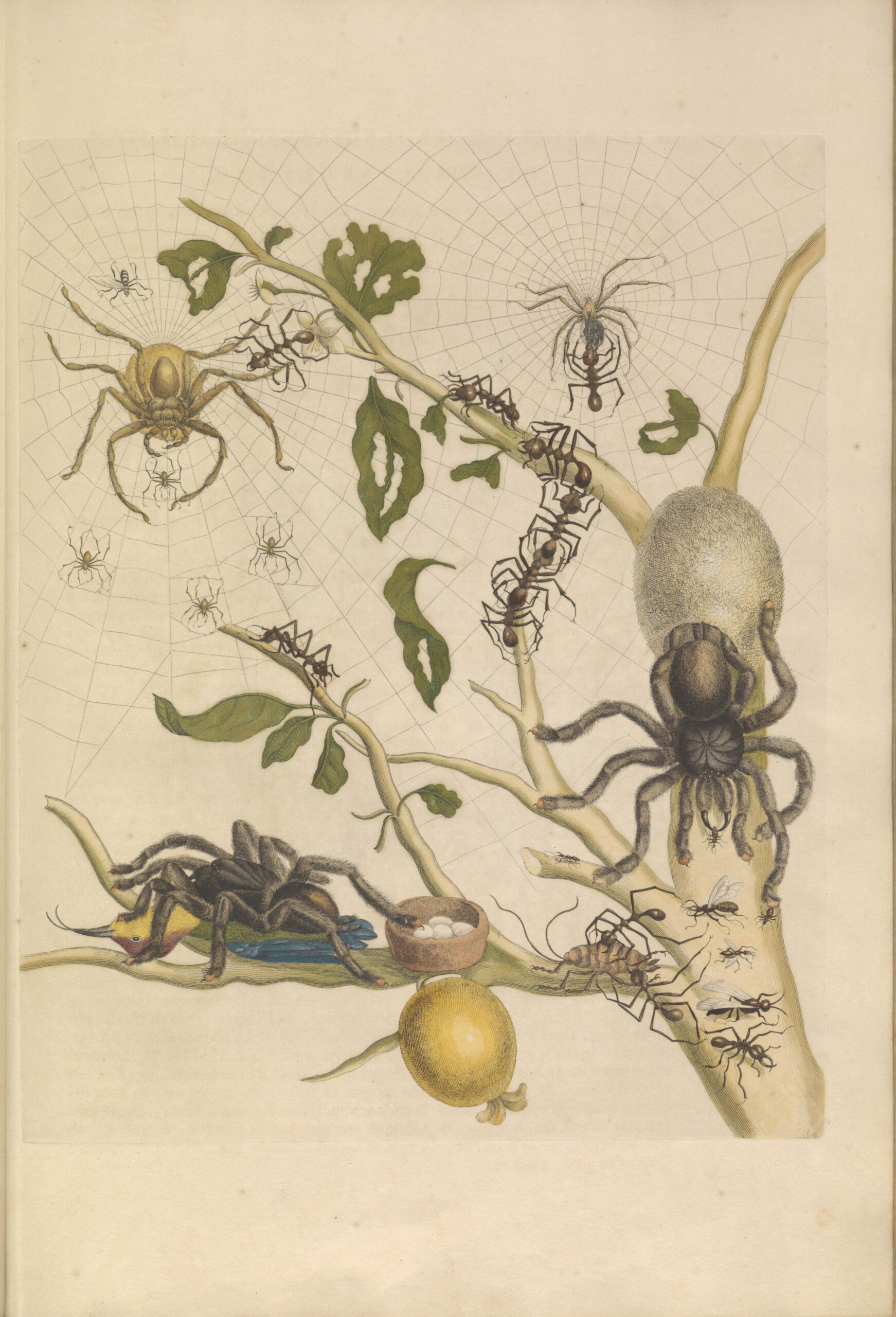 Some of the text accompaning this insect print describes the spiders and ants as follows: