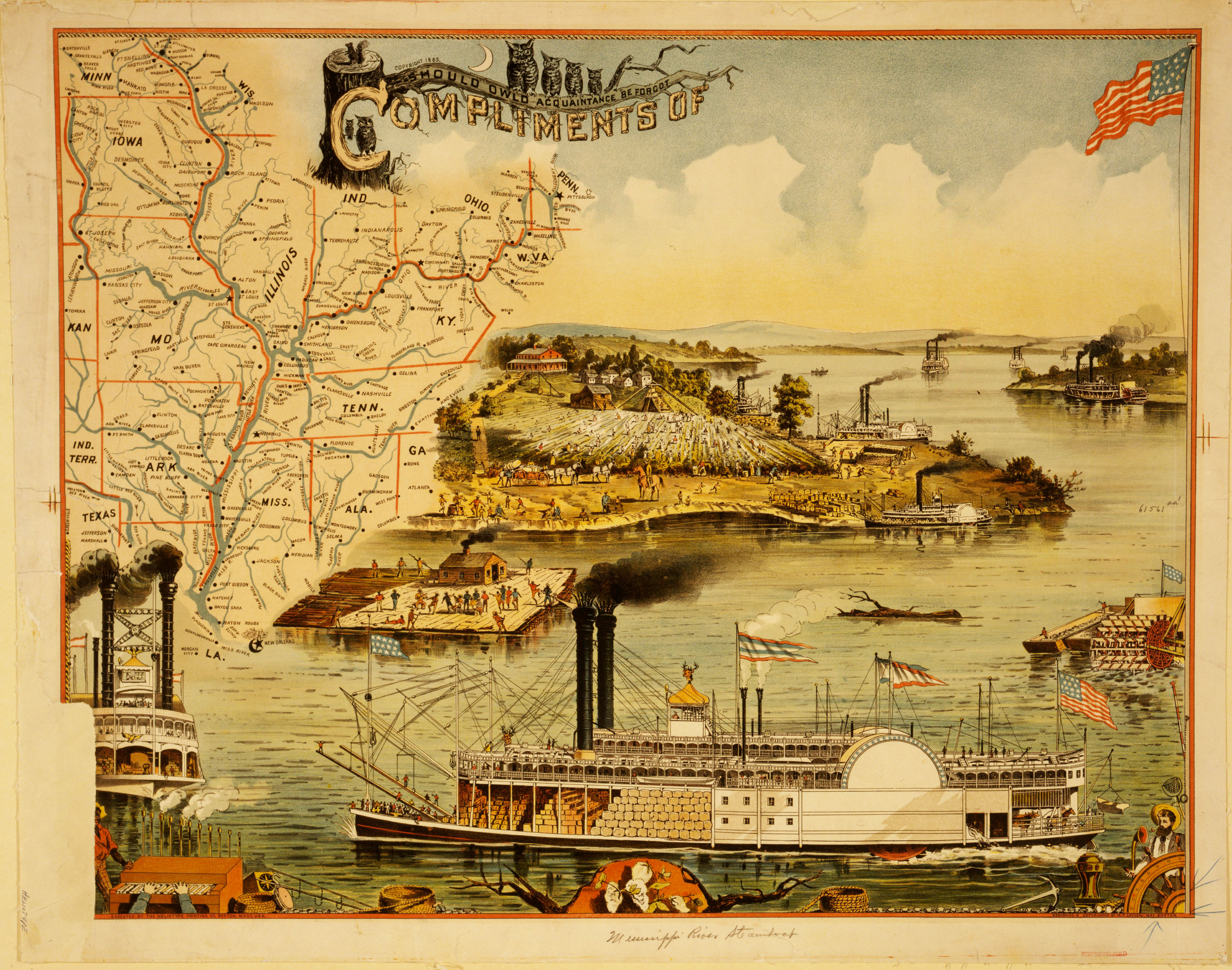 Mississippi river steamboat and tourist map from 1895.