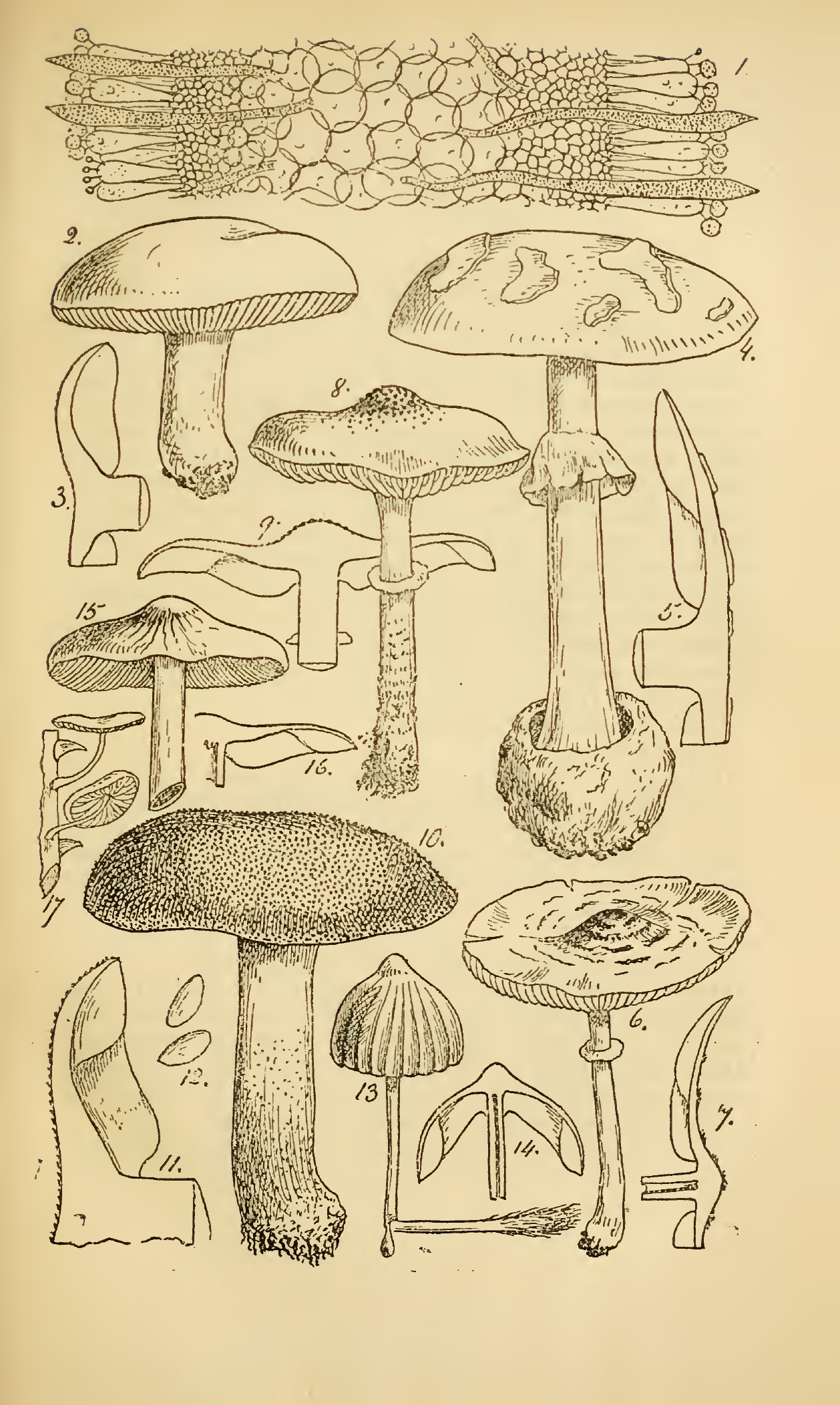 - Fig. 16, Hebeloma glutinosus; section half nat. size;