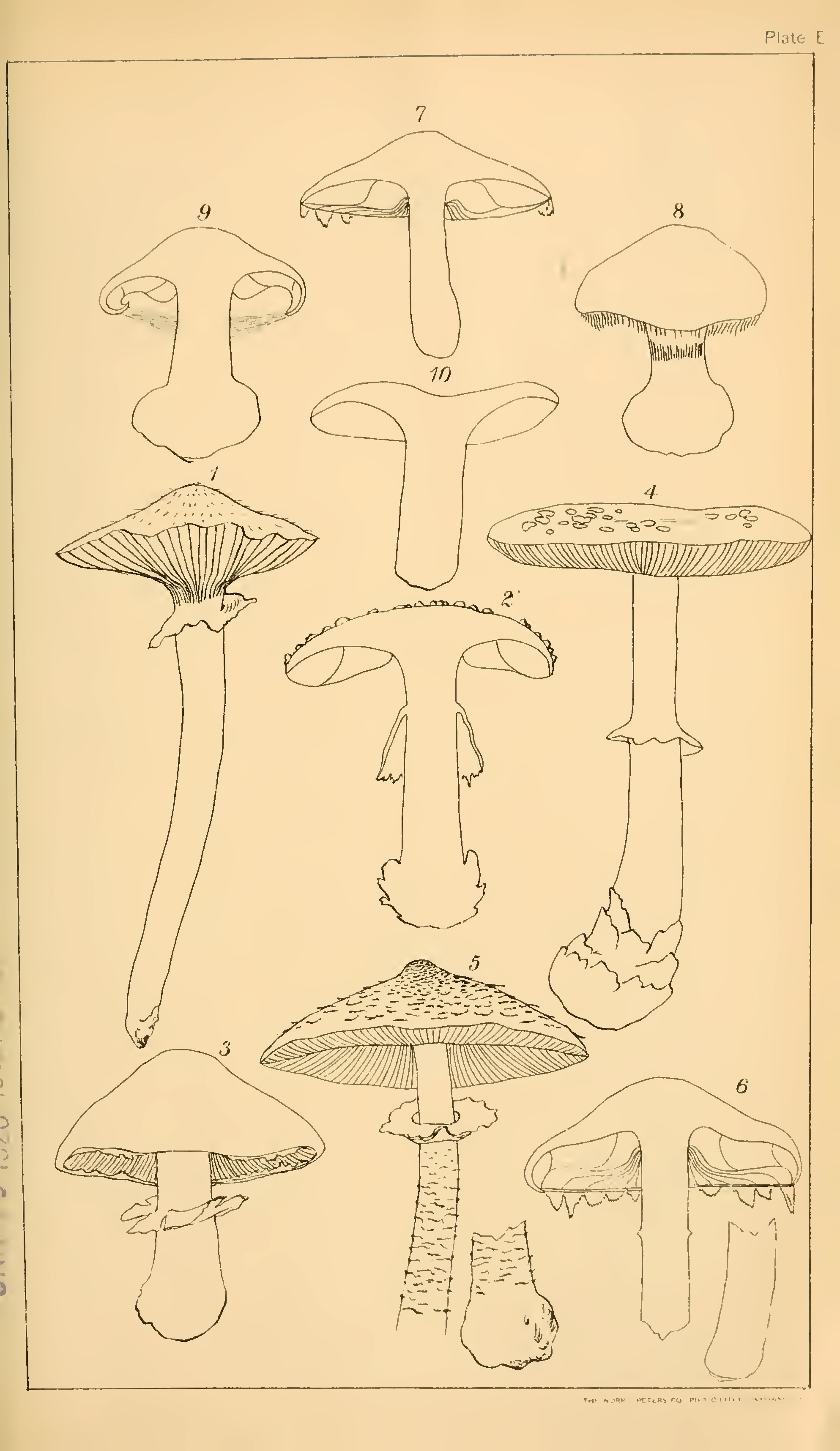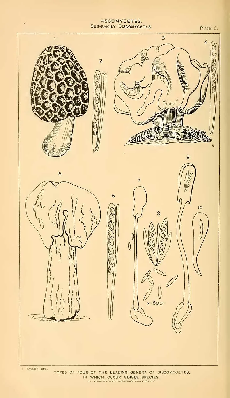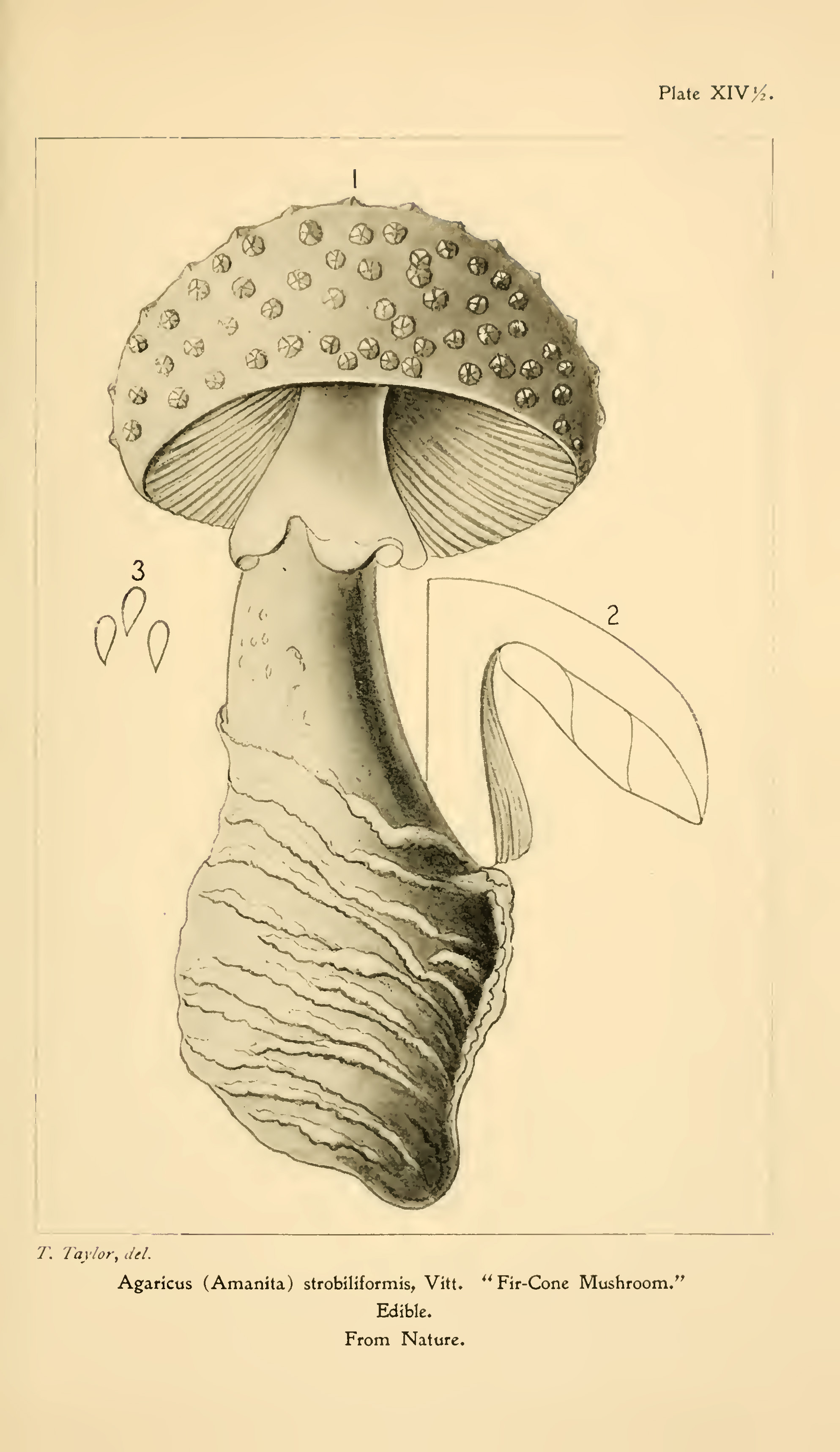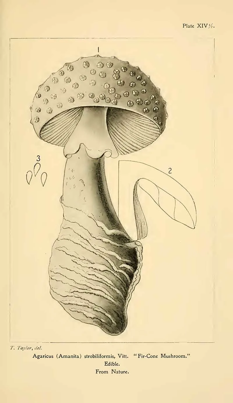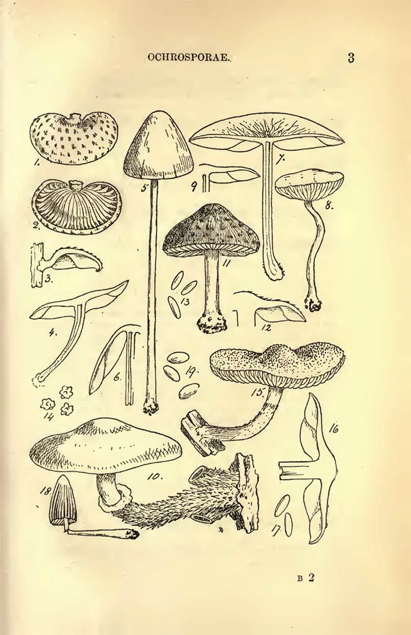 The next set of mushroom drawings is from “Student’s hand-book of mushrooms of America edible and poisonous” 1897, by Taylor, Thomas.