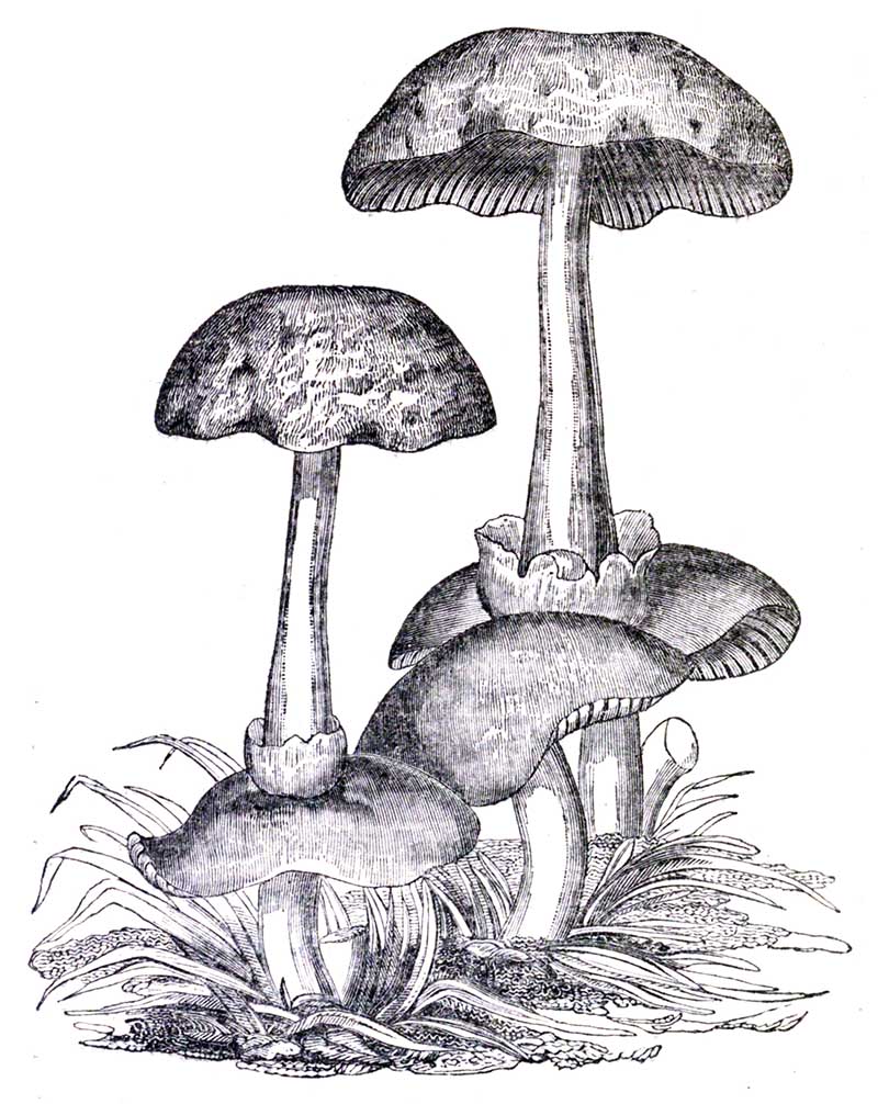 Fig. 1. Ring broad, reflexed or deflexed, or both; situated high up on the stem, as in Armillaria niellea.