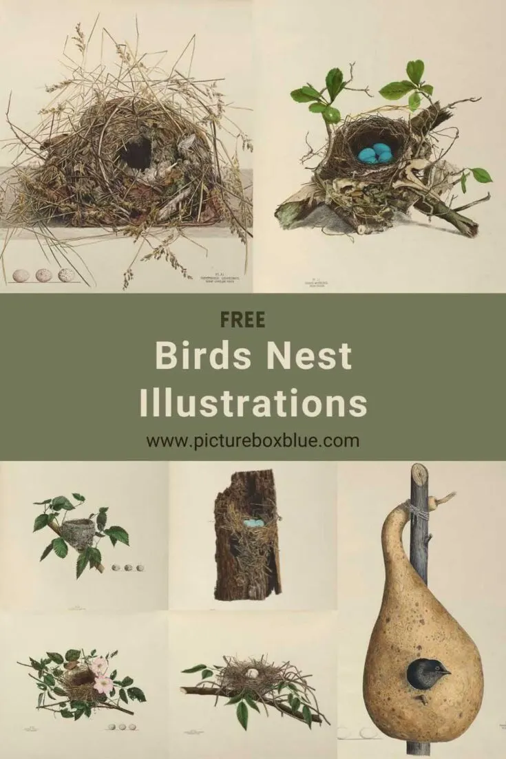18. Hummingbird and Gnatcatcher Birds Nest Illustrations