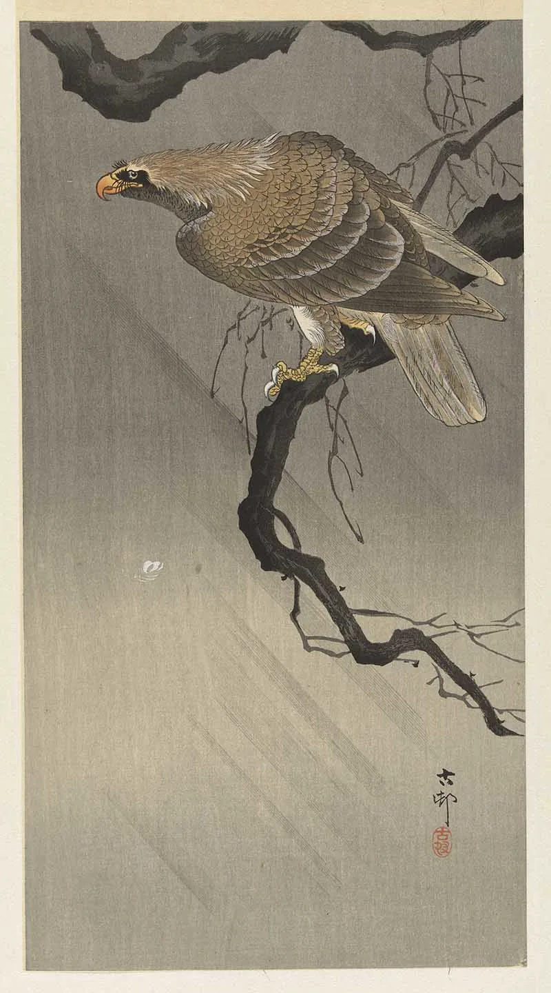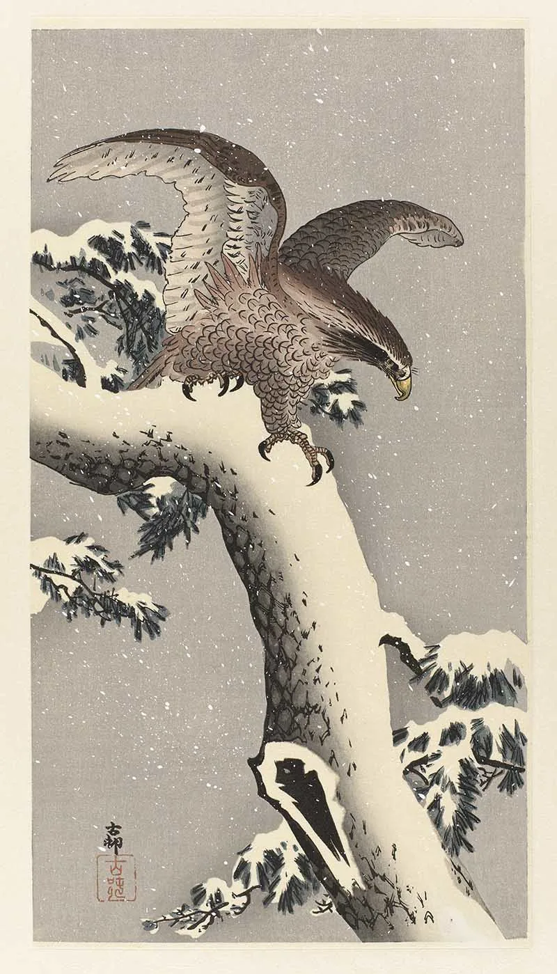 Ohara Koson’s paintings of eagles and owls are also among his notable works, and they showcase his ability to capture the essence of different bird species through his art.