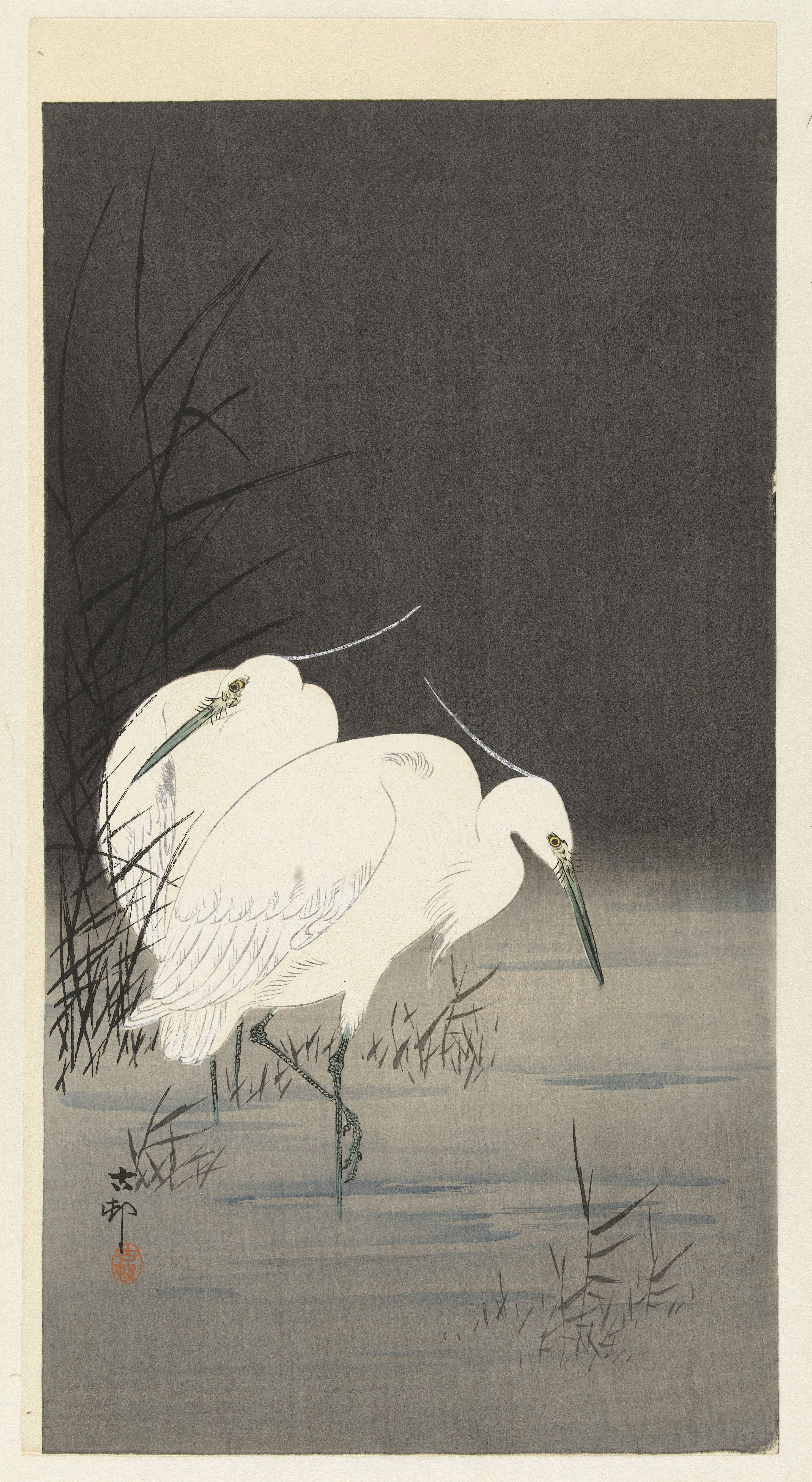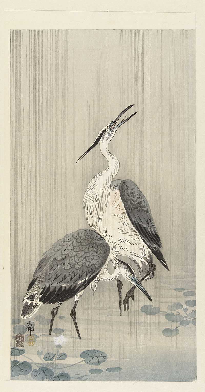In Japanese culture, herons are often associated with purity and grace. Koson’s portrayal of herons in a dignified and elegant manner may reflect these cultural associations.