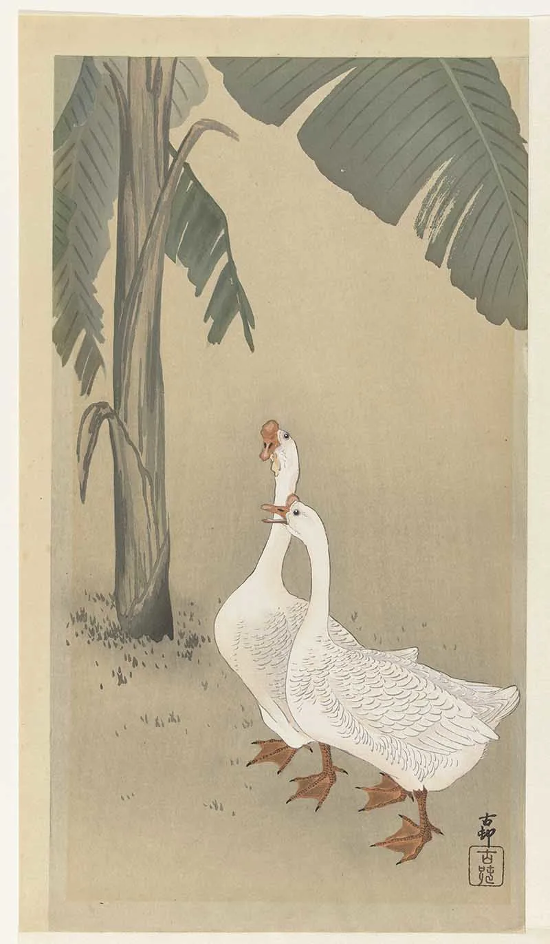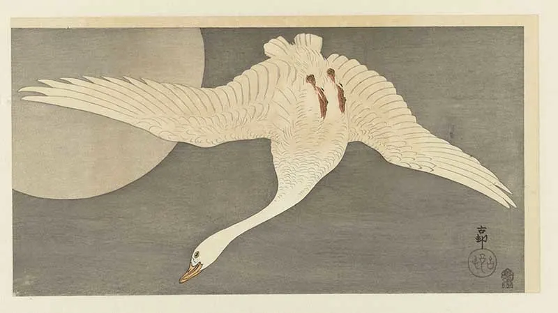 Koson’s geese paintings often capture the birds in motion, whether in flight or landing on water. The naturalism and sense of movement in these paintings reflect Koson’s ability to portray birds’ dynamic nature accurately.
