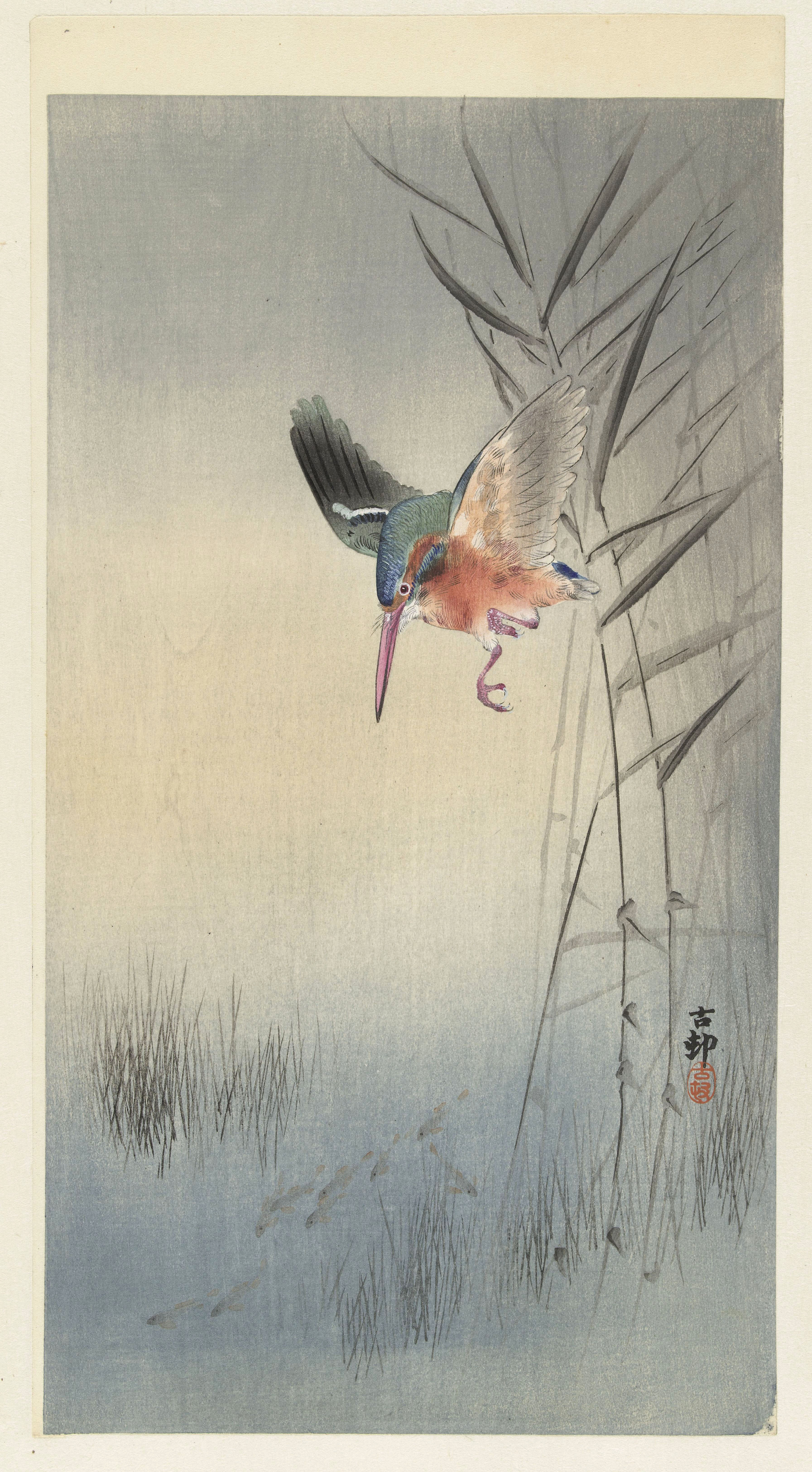 In Japanese culture, the kingfisher is sometimes associated with success and determination due to its fishing abilities. Koson’s representation of kingfishers can also be seen as symbolic, reflecting these positive attributes.