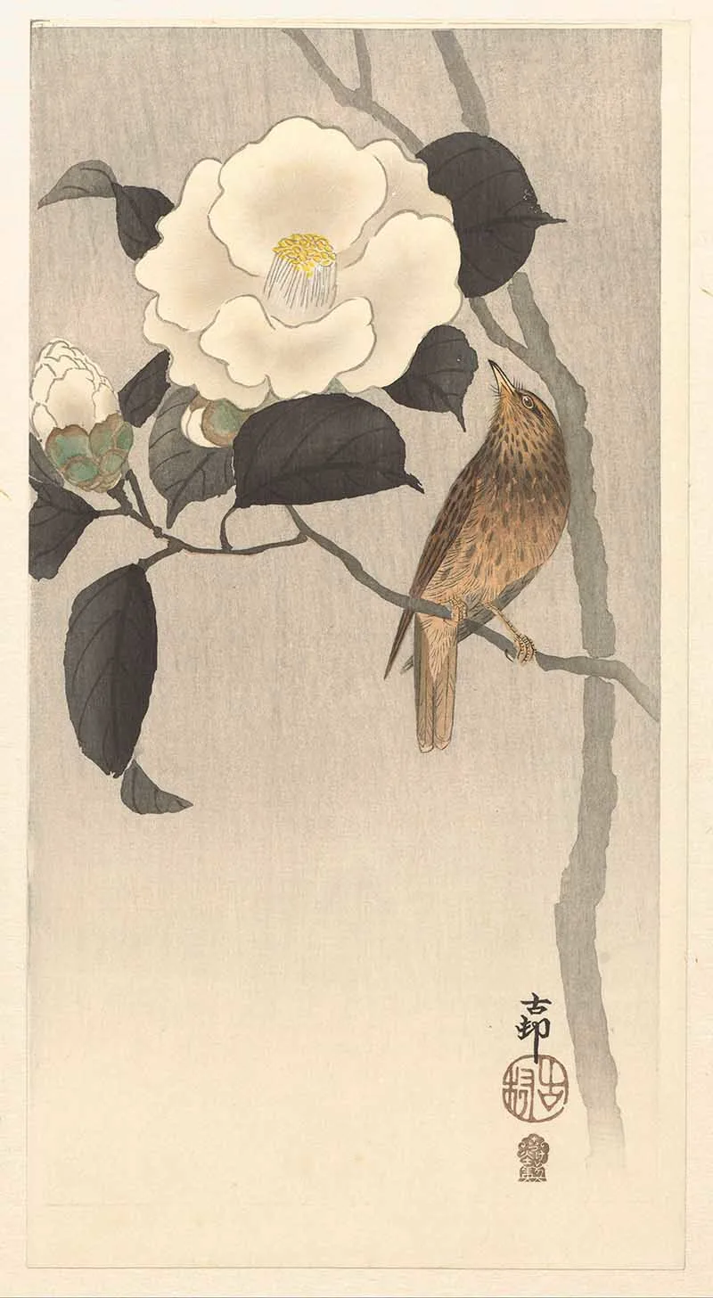 For other Japanese paintings of birds and flowers check out the memorizing paintings of Kono Bairei.
