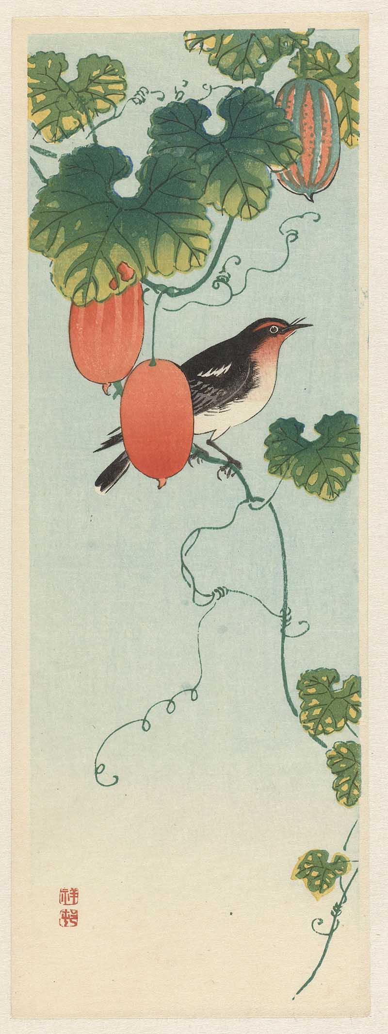 Ohara Koson Print 35: Songbird in Cucumber Plant