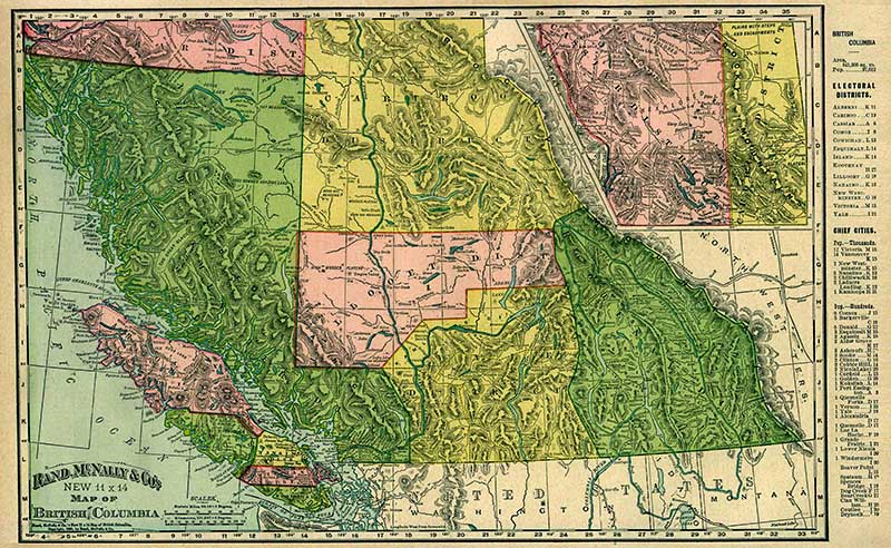 A Rand McNally & Co map of British Columbia Canada 1896.
