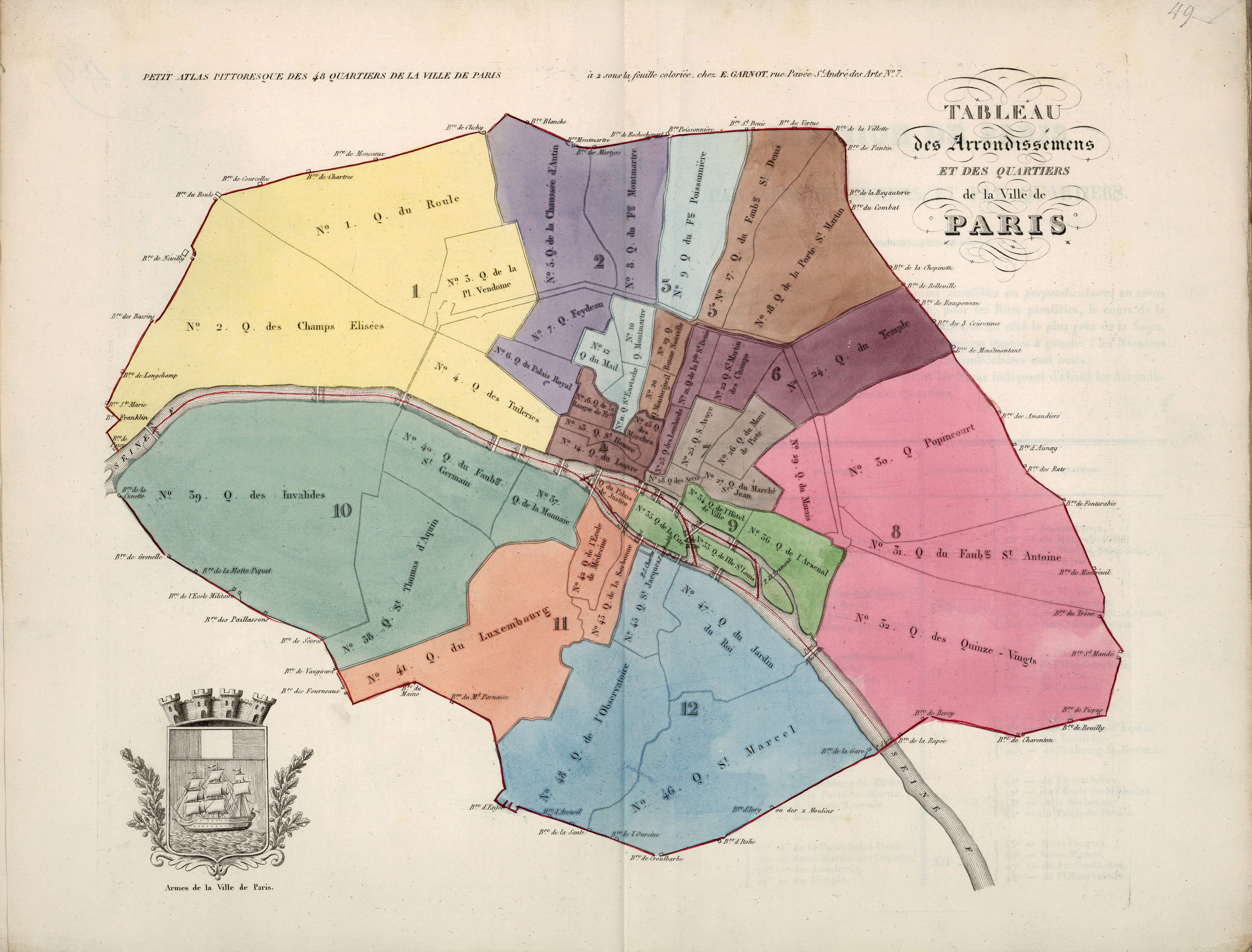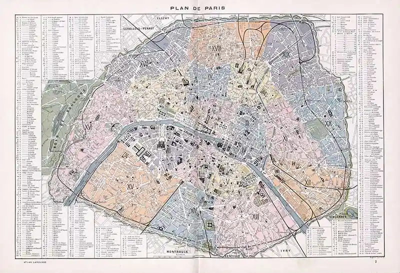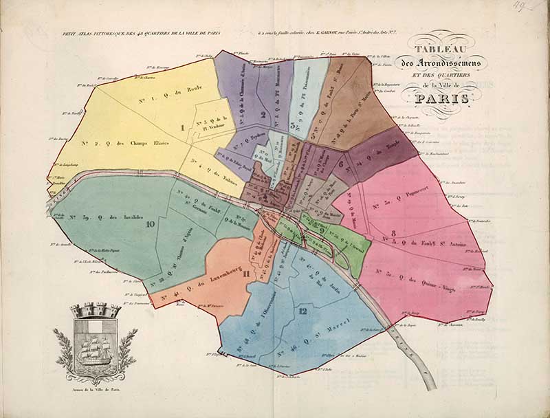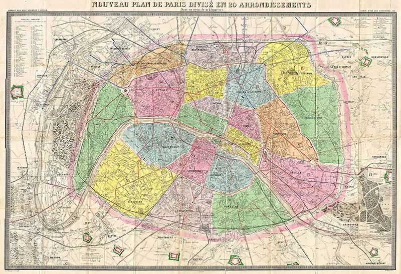 5. Colourful Map of Paris Showing the 20 Districts 1878