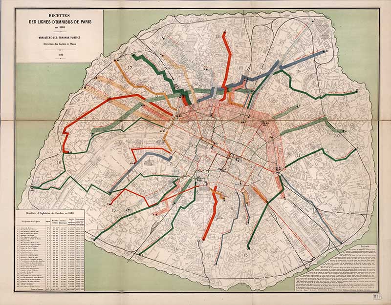 This is a gorgeous “vu d’oiseau” (bird’s-eye view) of Paris from 1615. I love that the buildings are 3D, and you can identify them easily on the map. The colours are gorgeous, too; however, because it’s so old, some major Parisian landmarks are missing, such as the Eiffel Tower, which had not yet been built.