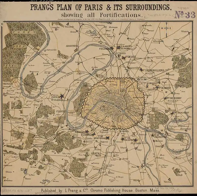 Prang’s plan of Paris & its surroundings, showing all fortifications 1870.