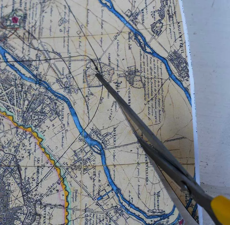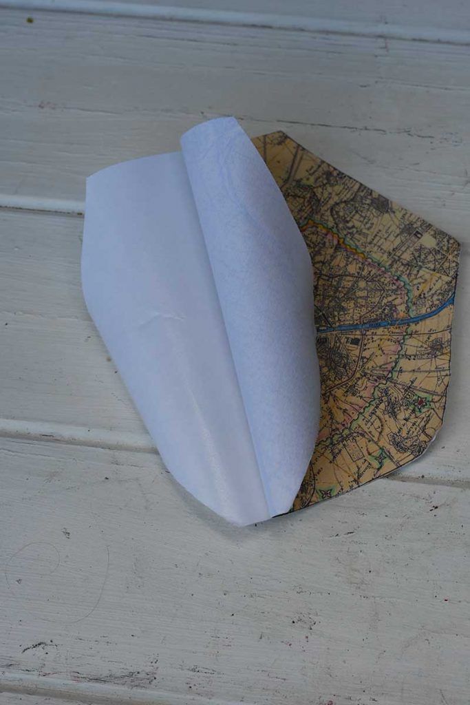 6. Next, carefully remove the paper backing from the fabric printed map. It should simply just peel away.
