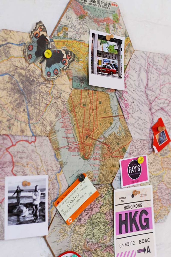 The great thing about this DIY cork board is that you can add to it with more map hexagons. I might add a new map after each special vacation.