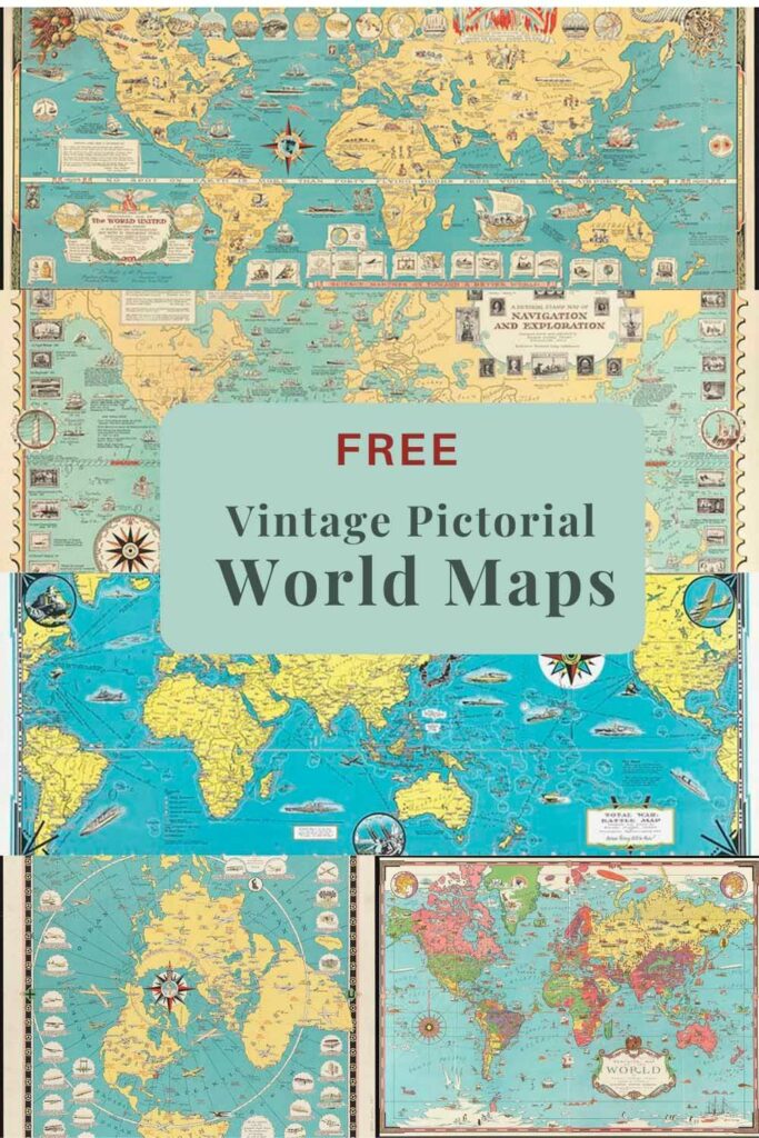 Vintage pictorial world maps