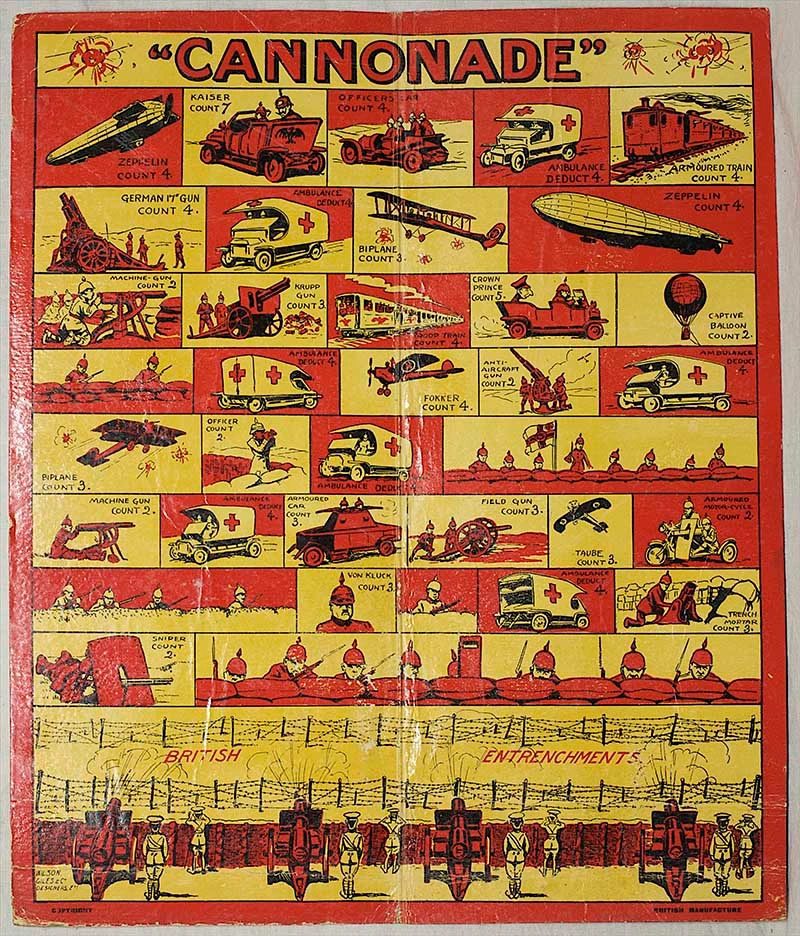 ”Cannonade” is a board game produced in 1916 during World War I, reflecting the patriotic fervour prevalent in New Zealand at the time.