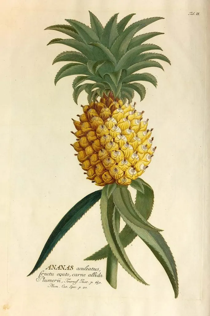 This stunning vintage pineapple illustration was by Christoph Jakob Trew, a German physician and botanist. The pineapple drawing is believed to be painted in 1765.
