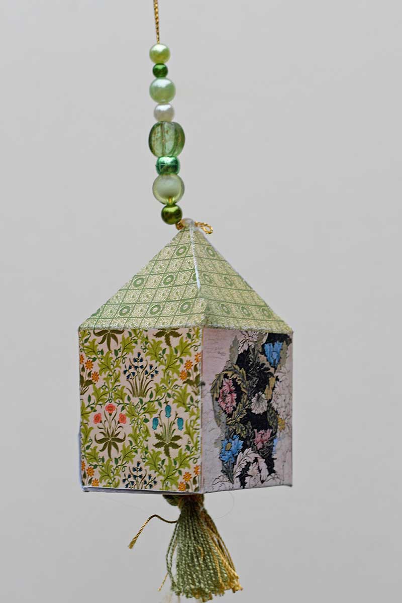To make these ornaments extra special, I like adding a beaded hanging loop at the top of the ornament and a tassel at the bottom. This small detail gives them a festive touch and brings out the colours in each vintage print.