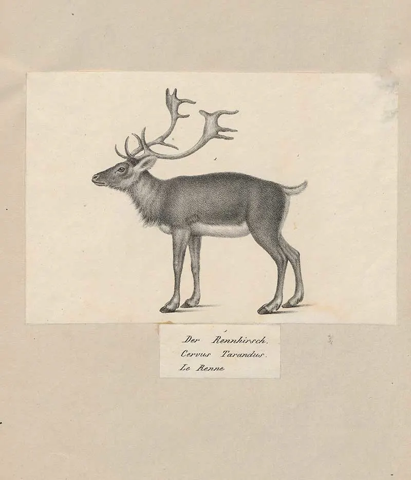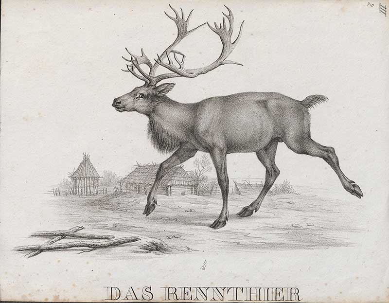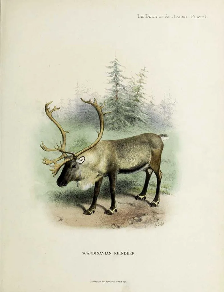 This reindeer illustration is from the book “The deer of all lands; a history of the family Cervidæ living and extinct” published in 1898.