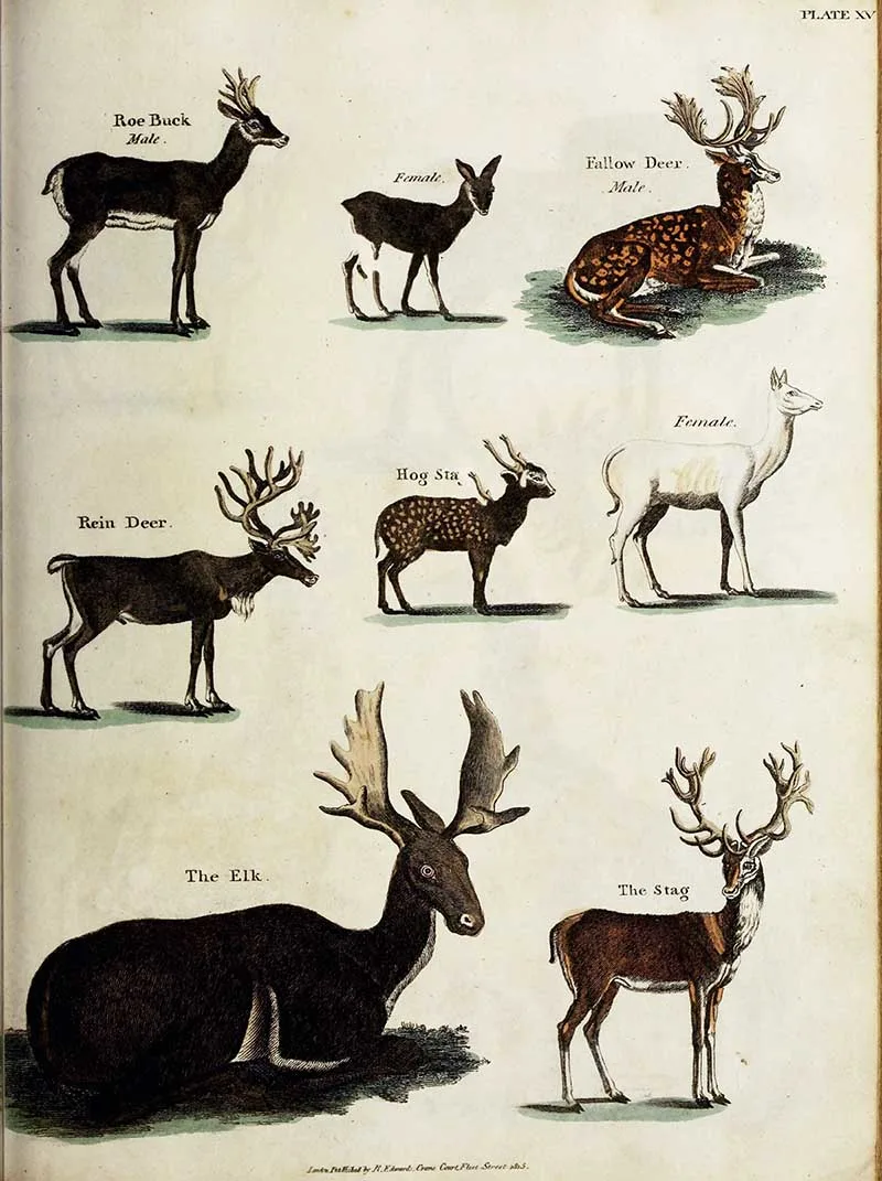 This vintage nature poster of deer is from the book “A History of The Earth and Animated Nature” by Oliver Goldsmith.