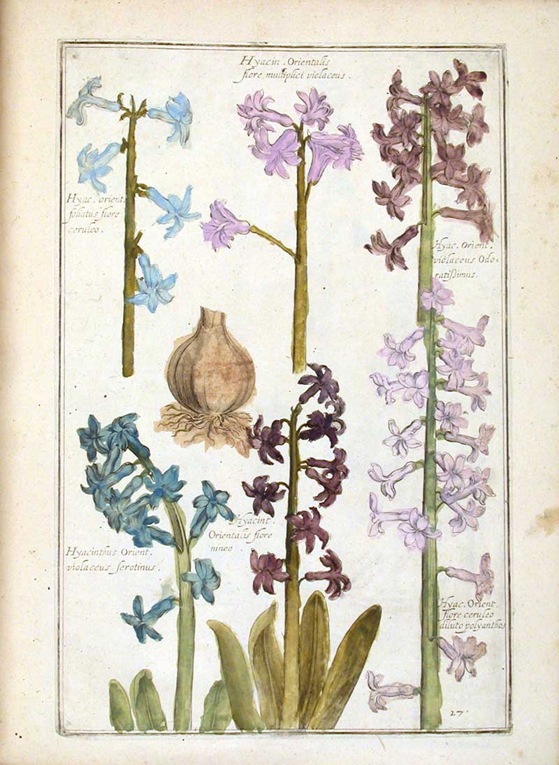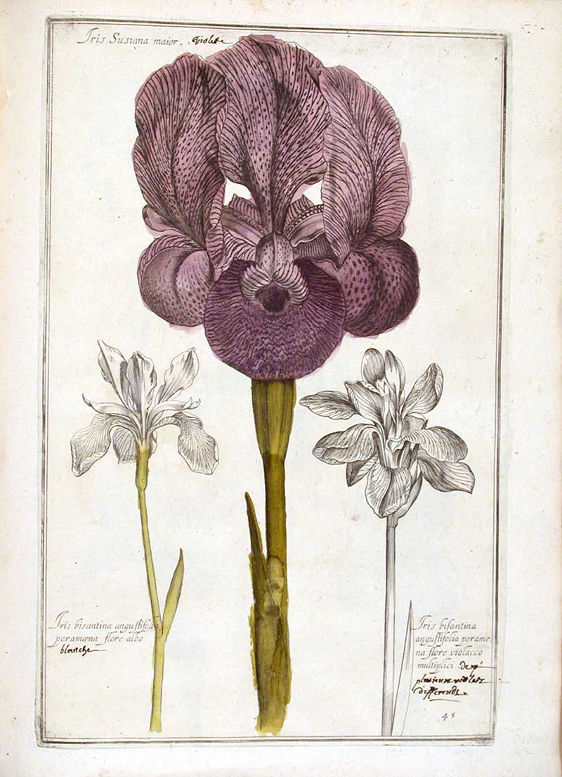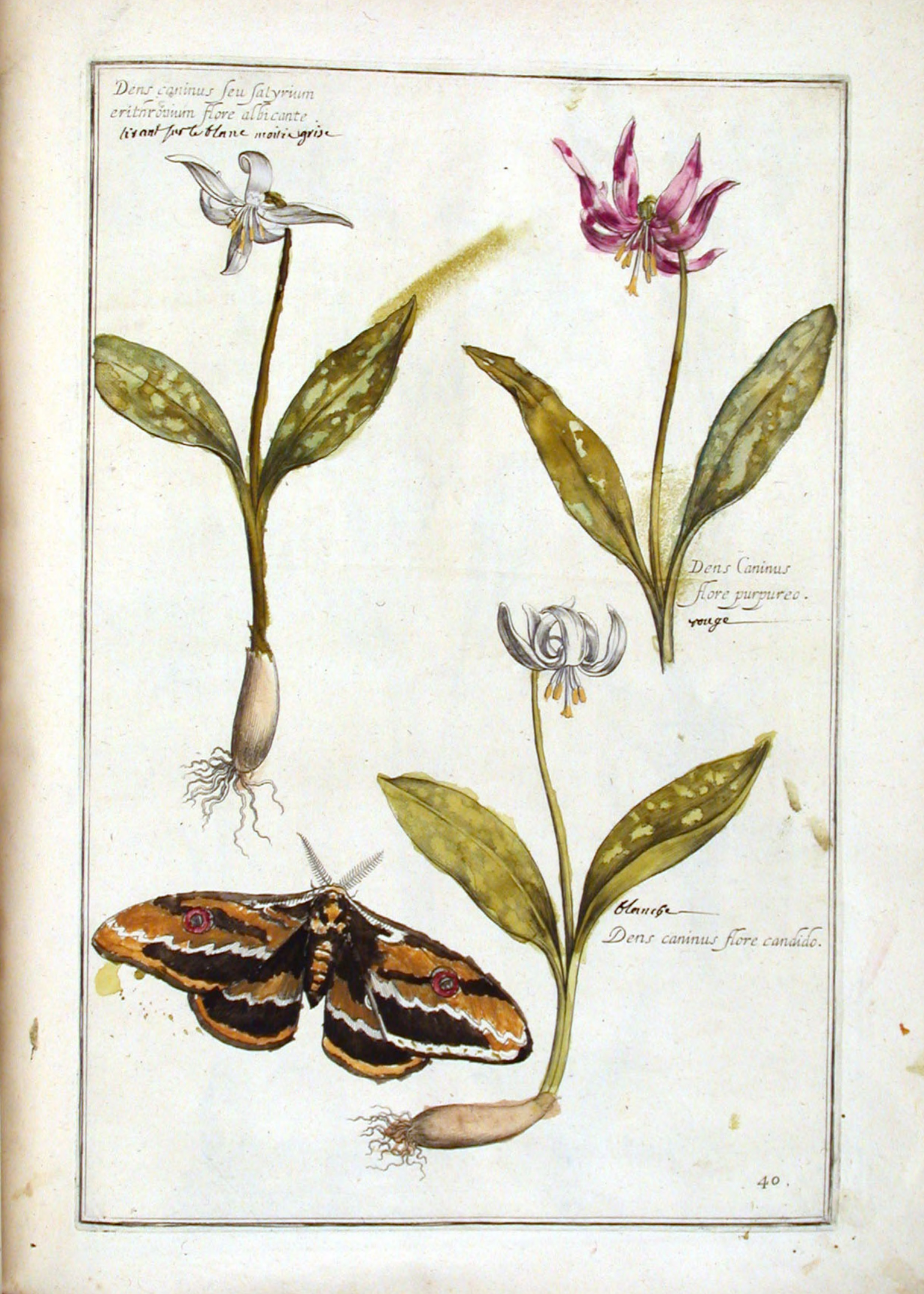 These illustrations showcase the artist’s skill and echo the tulip mania that swept Europe during the period.