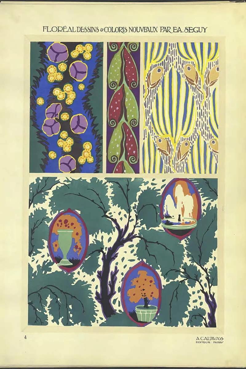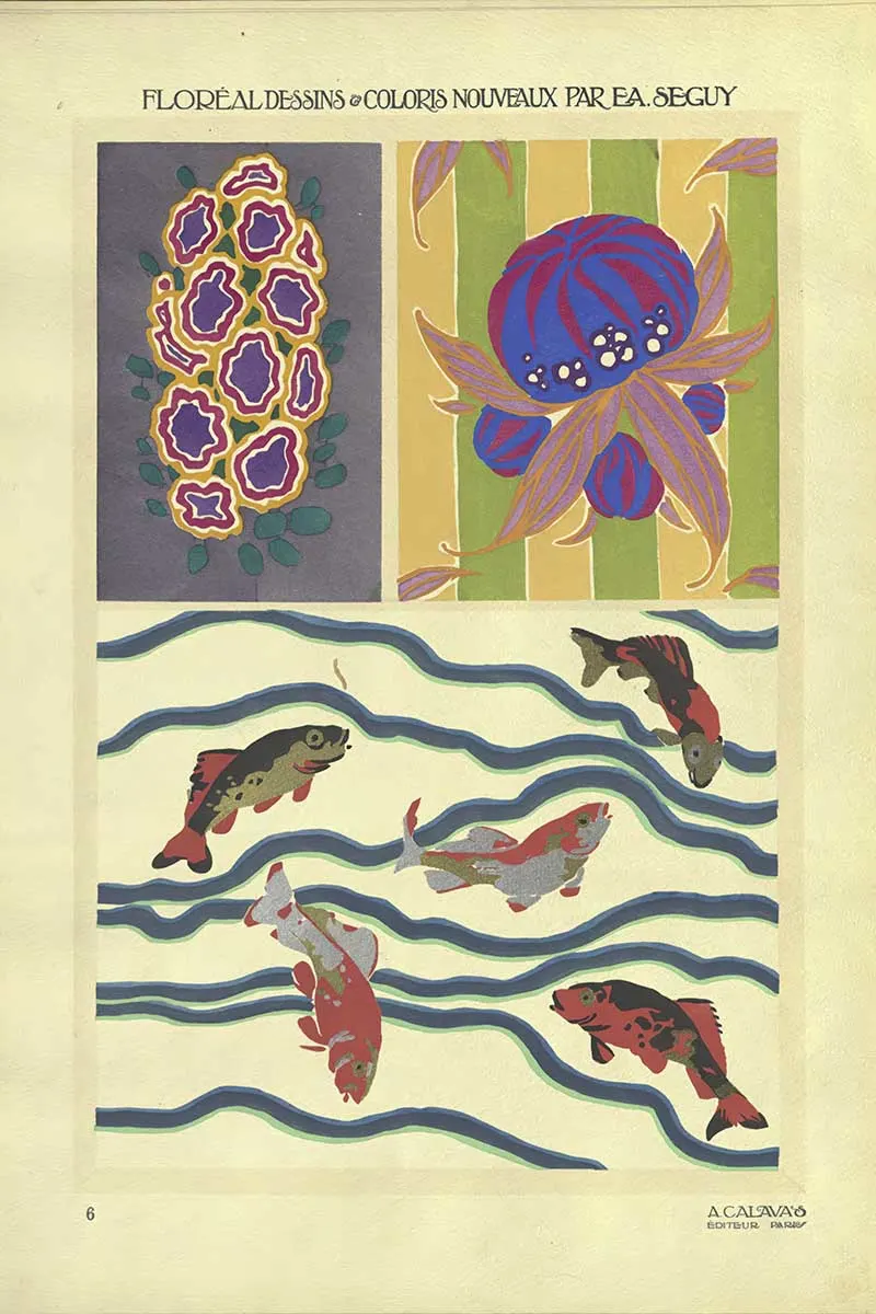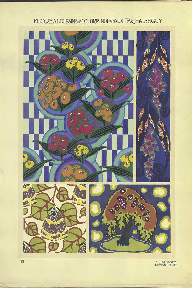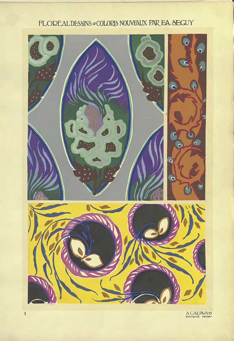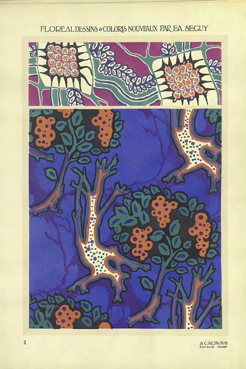 Émile-Allain Séguy (1877–1951) was a French artist and designer whose work celebrates the natural world. His collections often revolved around insects, flowers, and organic patterns, rendered with extraordinary attention to detail and colour. He mastered the pochoir technique, a labour-intensive stencil printing method, to create vivid, textured designs that stood out in both the Art Nouveau and Art Deco movements.