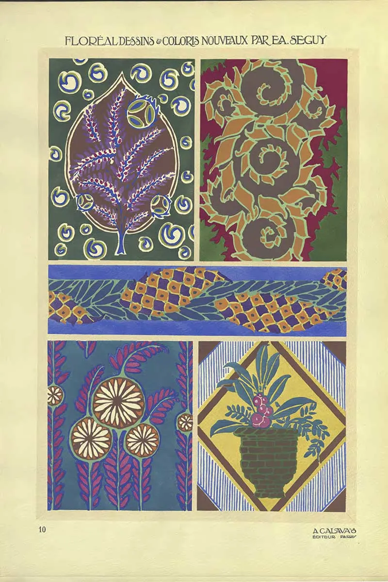 Explore the breathtaking pochoir floral patterns of Émile-Allain Séguy’s Floréal. Discover 20 Art Nouveau flower patterns, available as free downloads.