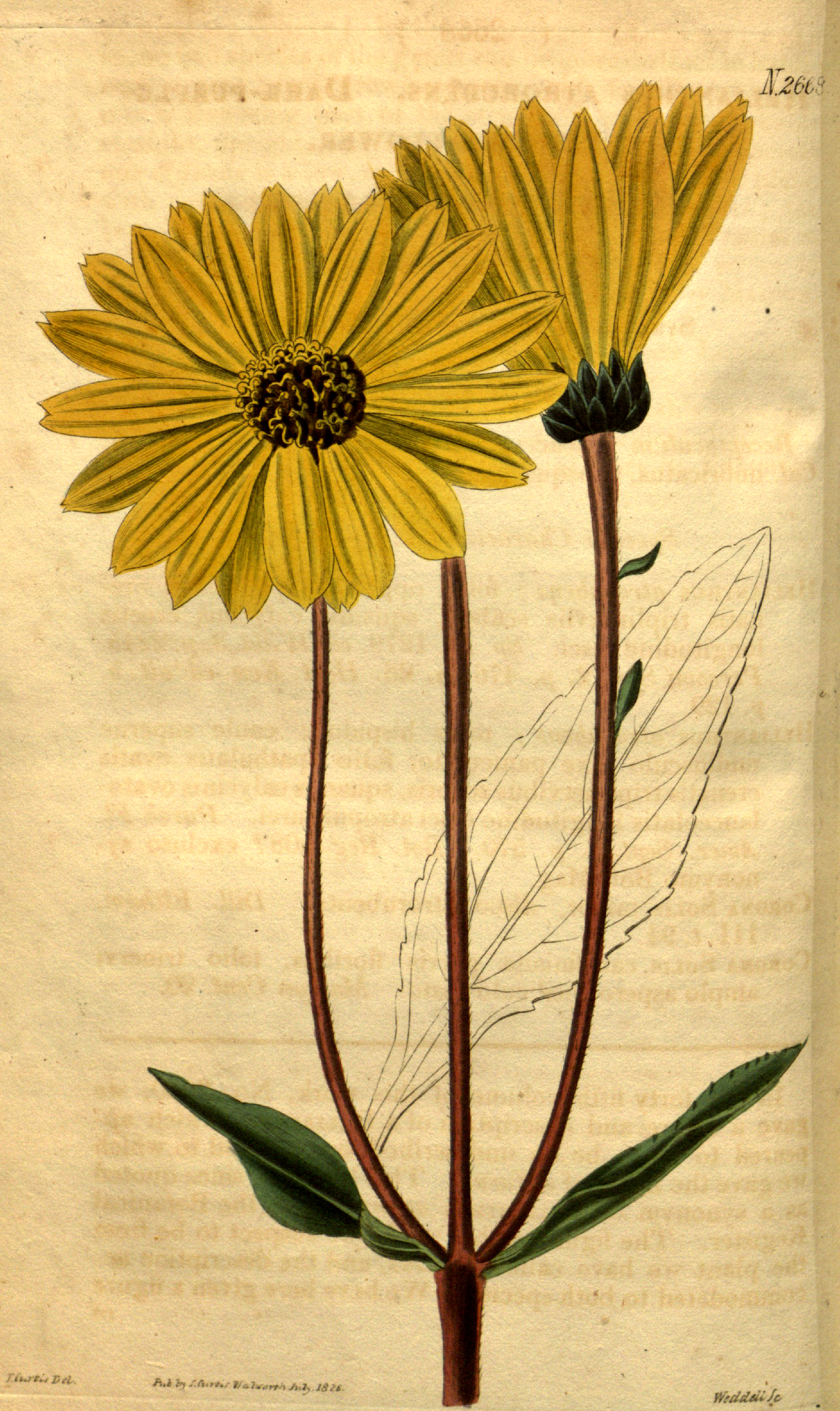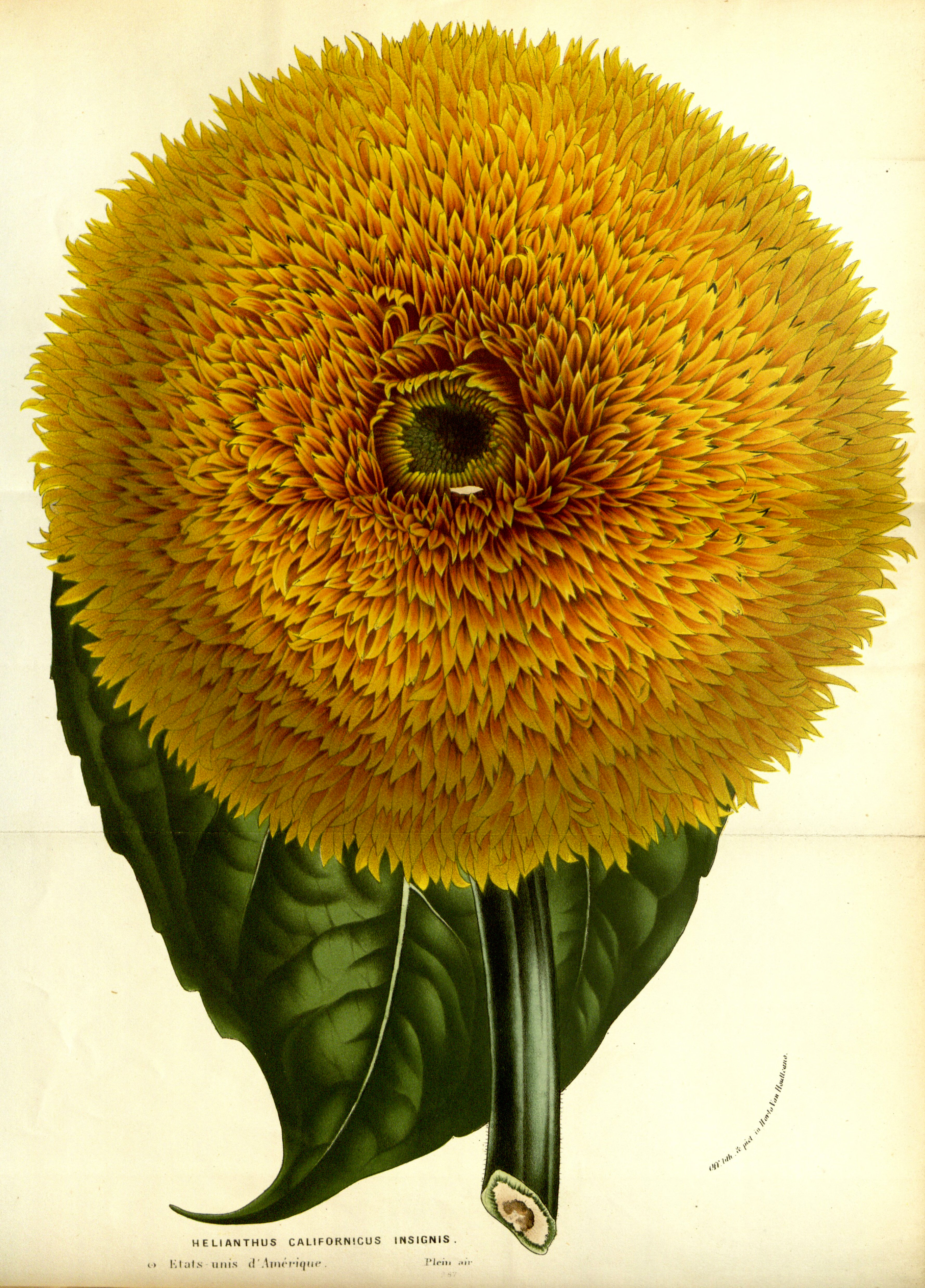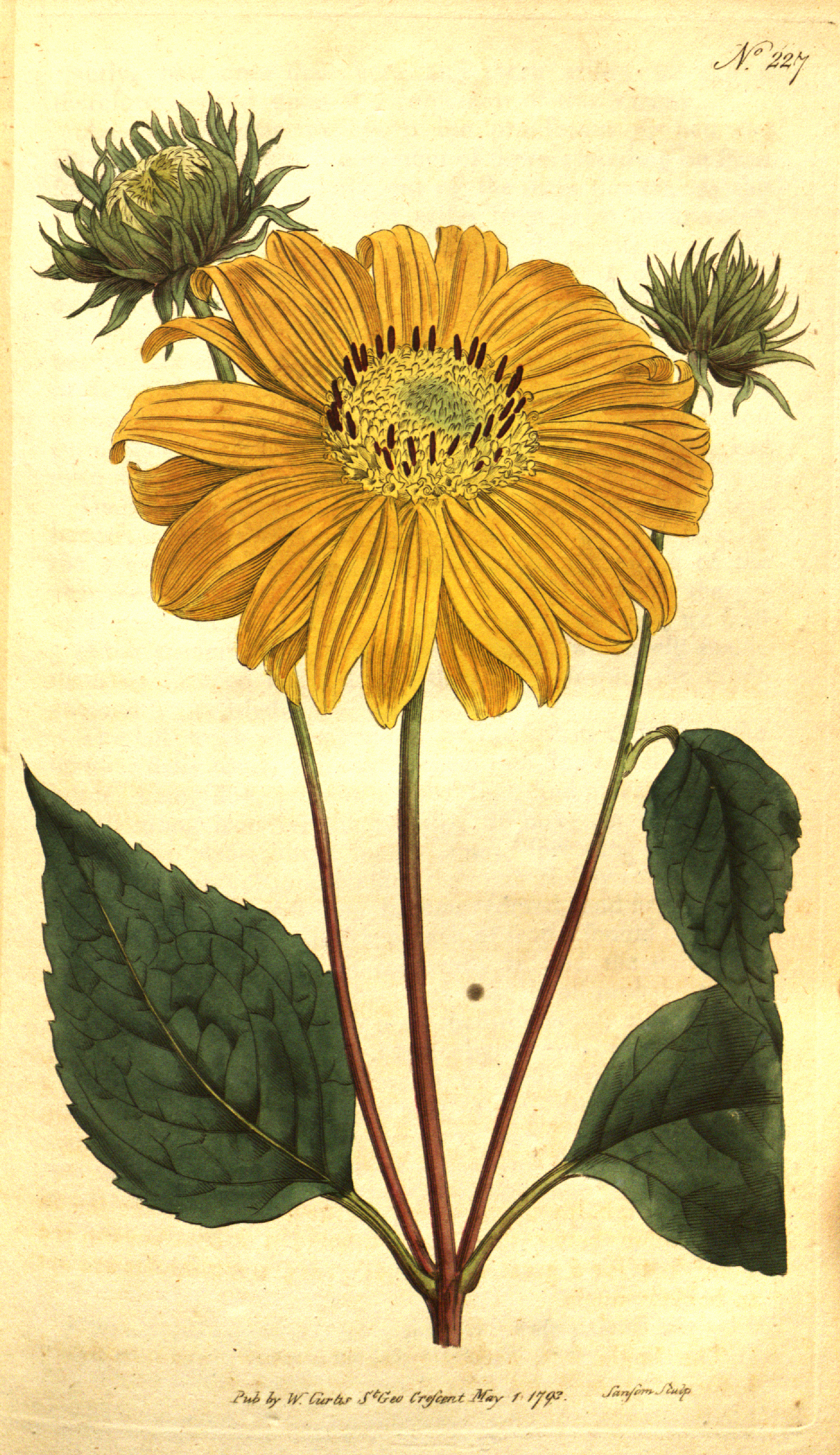 This sunflower illustration is from Curtis’s Botanical Magazine 1826.