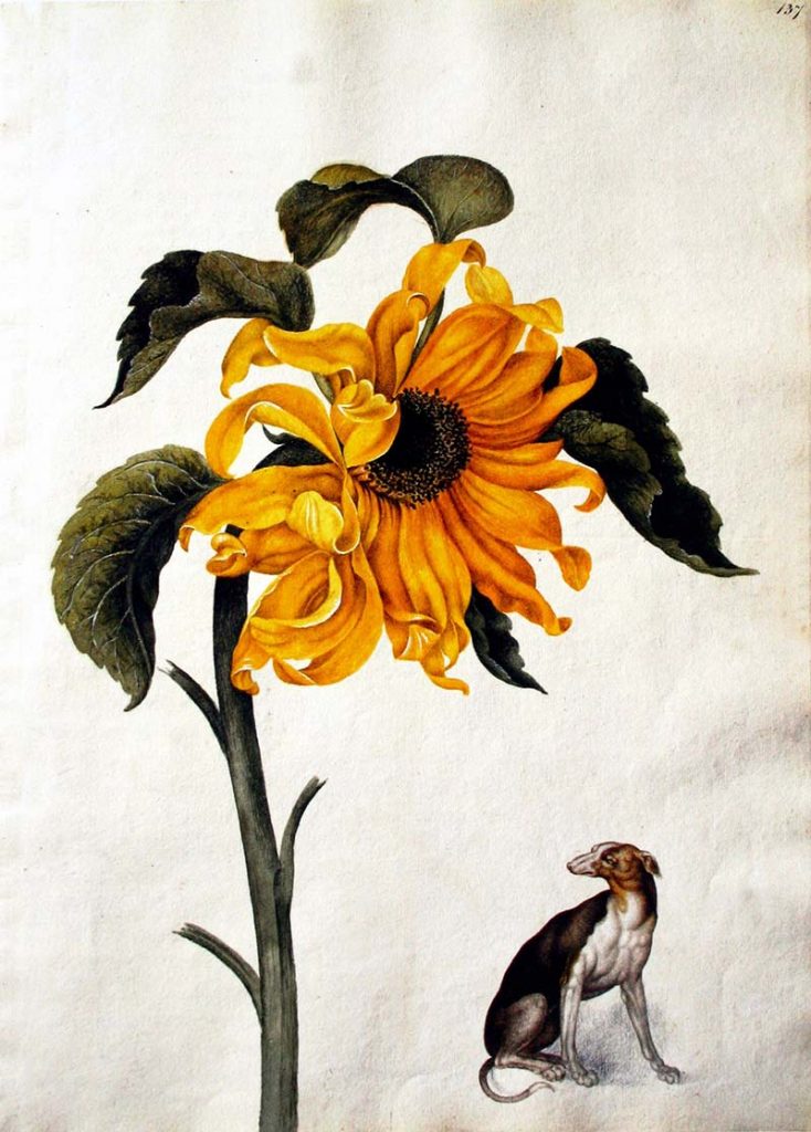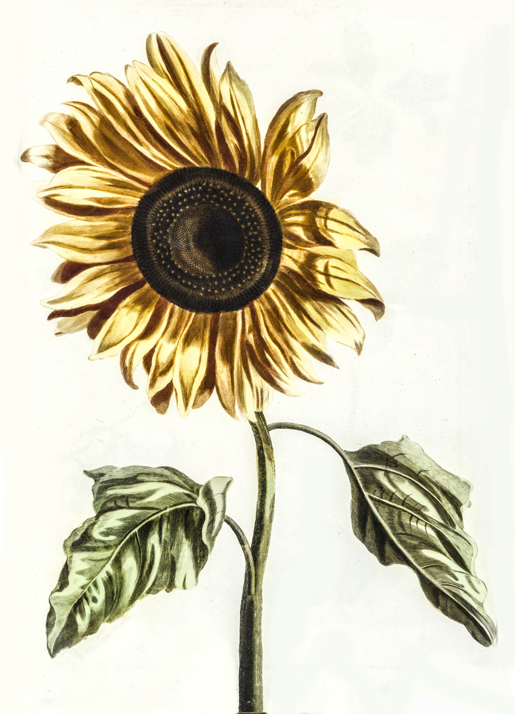 A gorgeous sunflower by the Dutch artist Johannes Teyler. He was a Dutch Golden Age painter, engraver, mathematics teacher, and inventor of the colour print. This sunflower was painted in the late 17th century, sometime between 1698-1699.