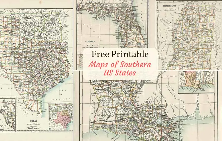 Printable old map of Texas, Florida, Louisiana, Georgia, North & South Carolina, Alabama, Mississippi, Arkansas and Tennessee These gorgeous old Maps of the Southern United States come from an original …