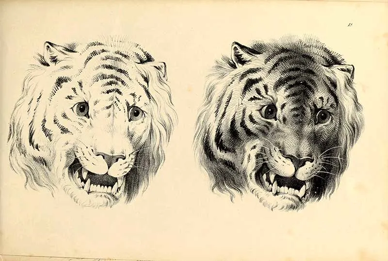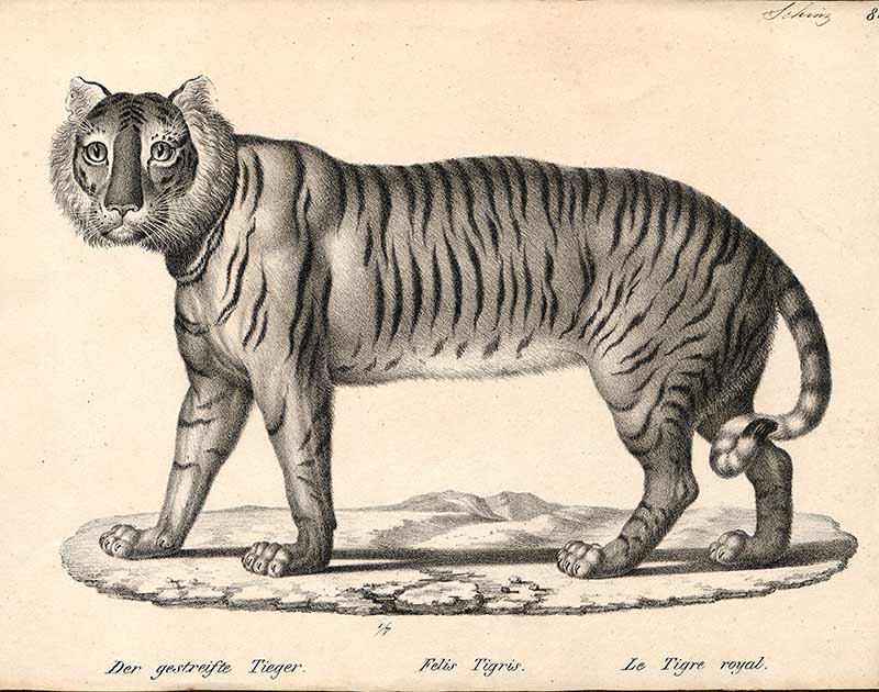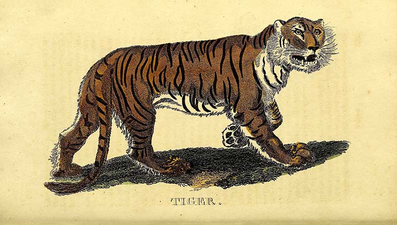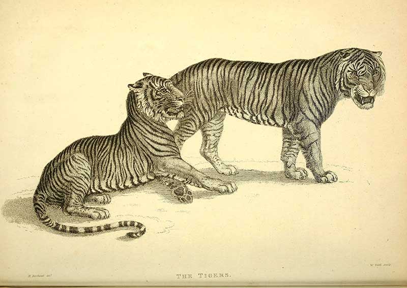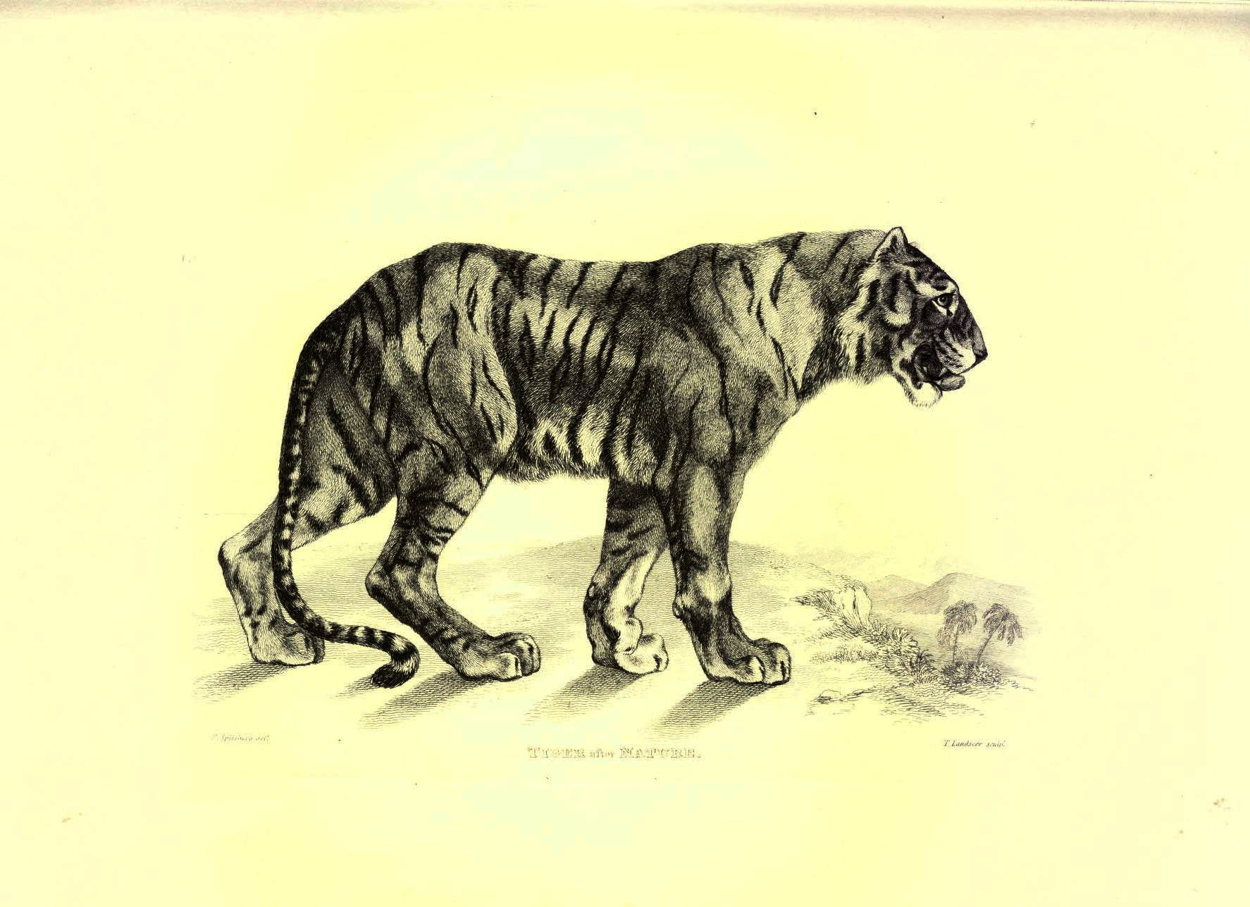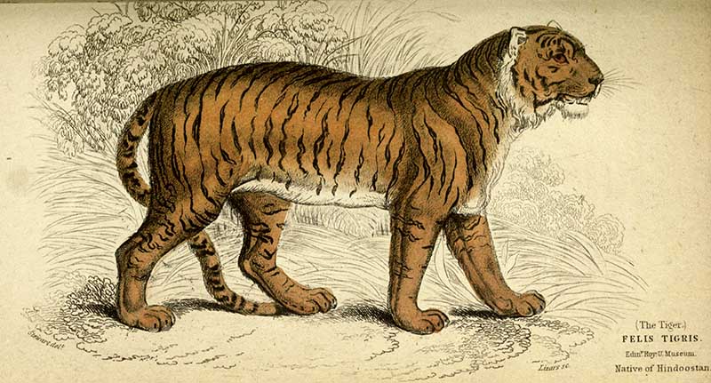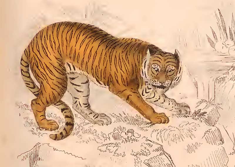 The following two tiger drawings are from “The Edinburgh journal of natural history and of the physical sciences, with the Animal kingdom of the Baron Cuvier” 1835.