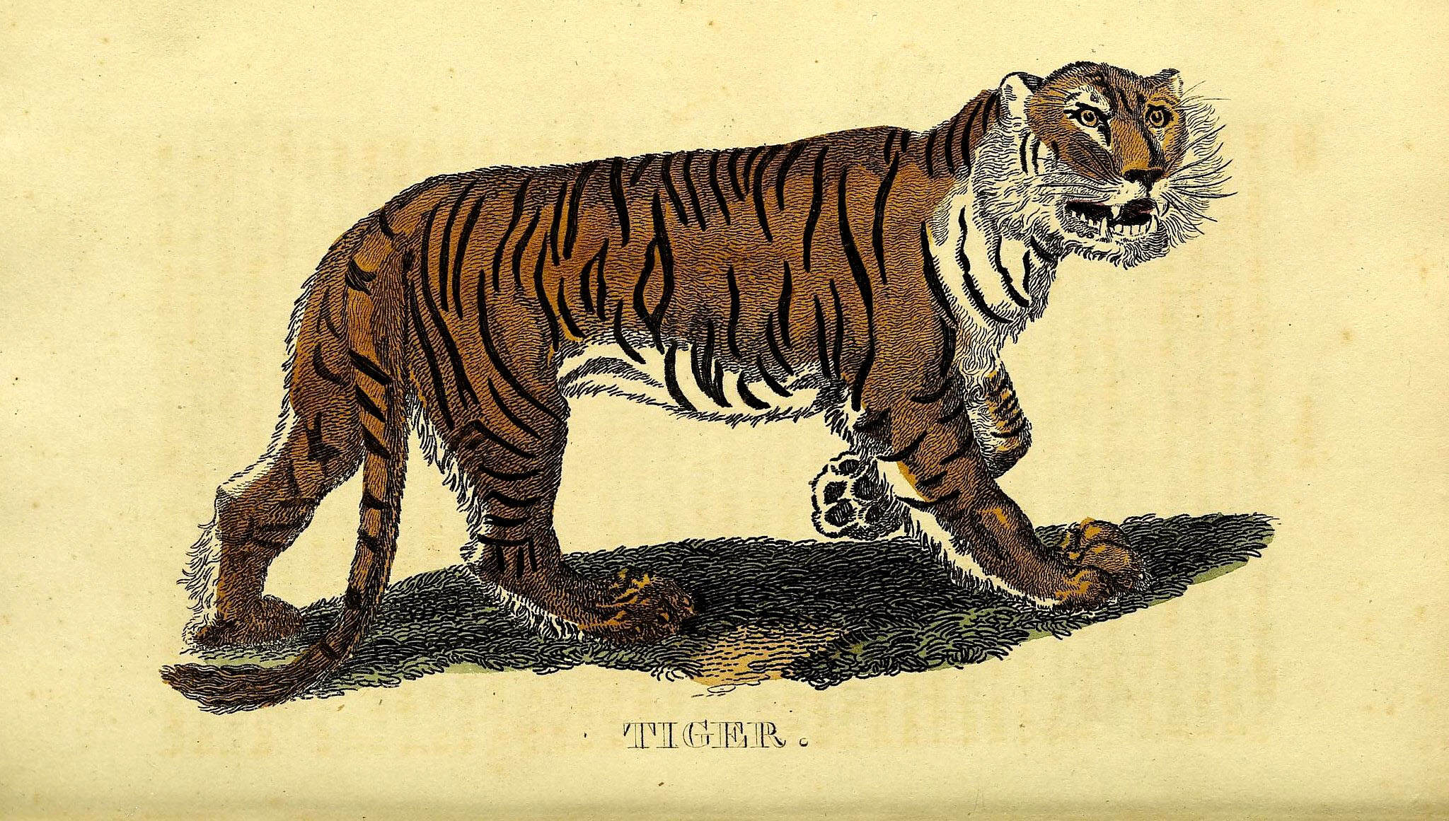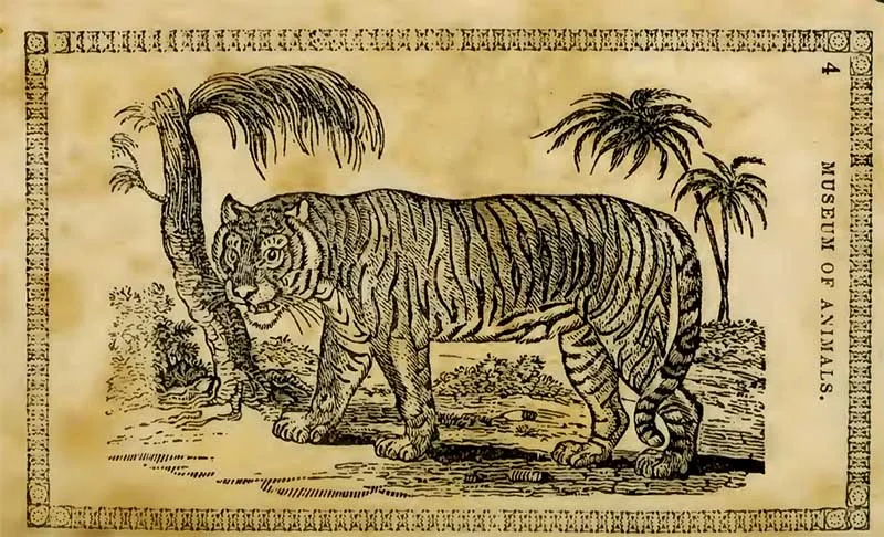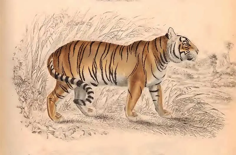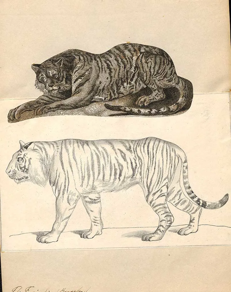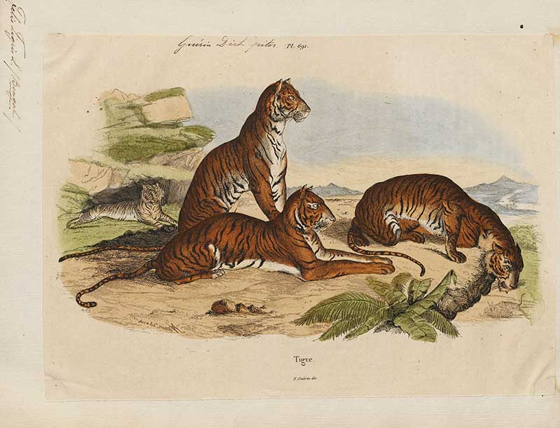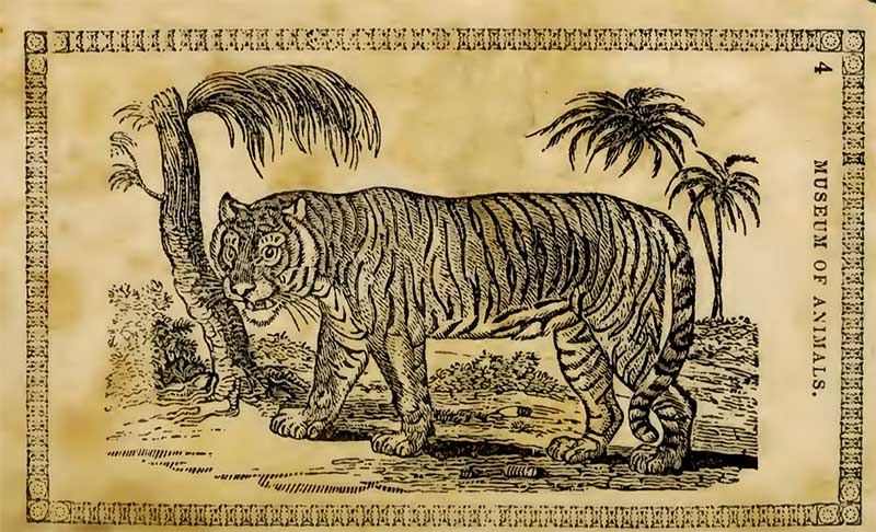 The following two tiger drawings are from “The Edinburgh journal of natural history and of the physical sciences, with the Animal kingdom of the Baron Cuvier” 1835.
