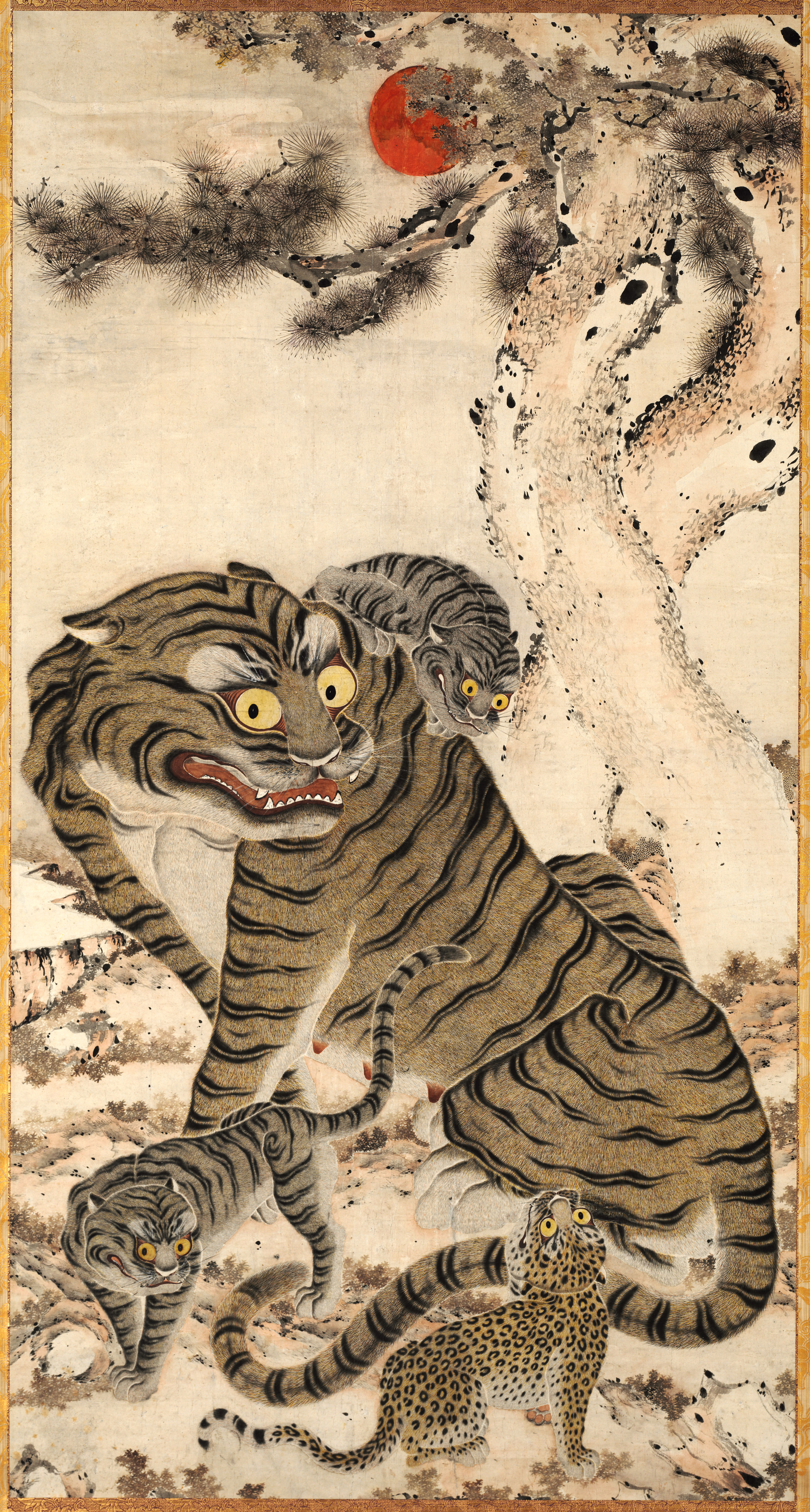 Tiger Family, late 1800s. Korea, Joseon dynasty (1392-1910). Hanging scroll; ink and colour on paper from The Cleveland Museum of Art.