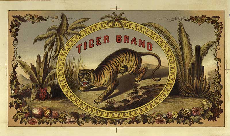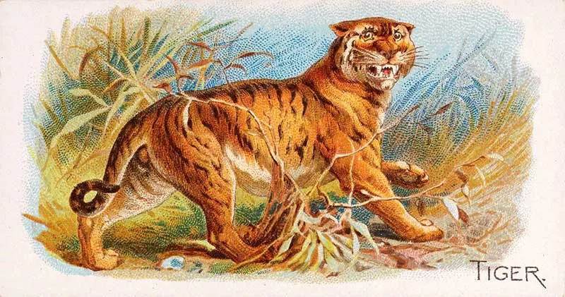 This tiger image looks like it is printed on a cigarette card.