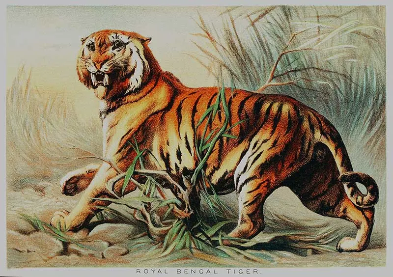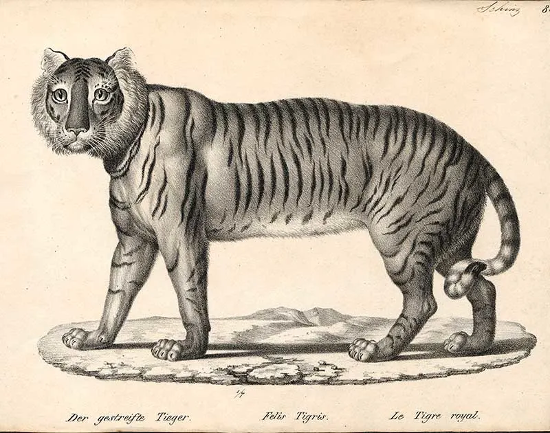 This curated collection of vintage illustrations and drawings showcases the tiger in all its glory, as seen through the lenses of time-honoured artistic techniques.