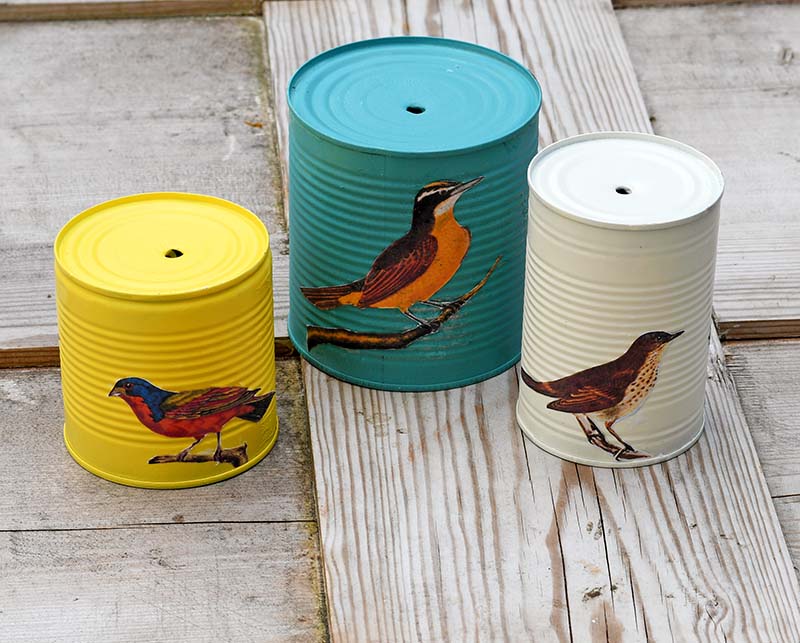 I am about to make tin can windchimes and wanted a waterproof finish for outdoors. The acrylic varnish suggestion is the answer! Thank you!I will be using woodland flora and fauna prints that I can find. These hopefully will be Christmas gifts. Going to make some tuna can ornaments and litter jug storage/ wastebasket containers. No money for Christmas this years, so will repurpose containers! Keep up the good ideas!