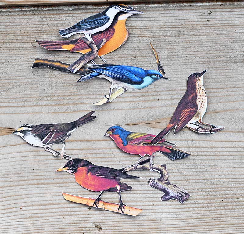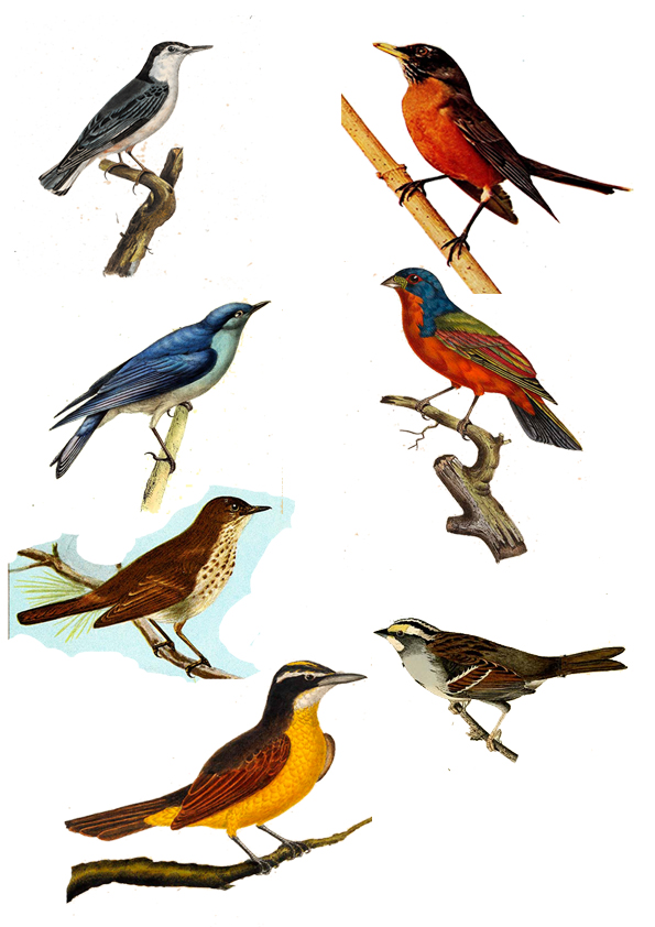 I made a wonderful parrot decor for a cloche but that same papercraft would look just as fabulous using these songbird illustrations instead. These songbirds would also look great on some decoupage placemats.