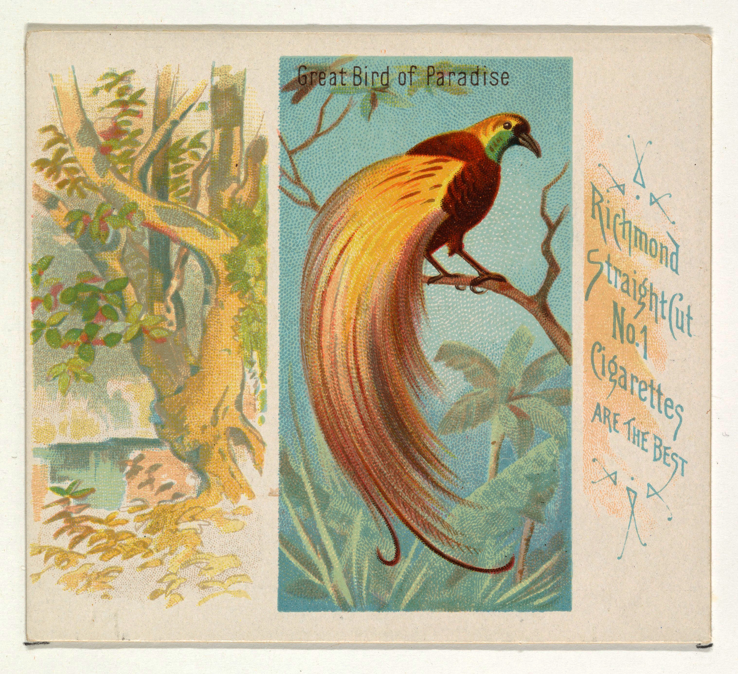 Vintage cigarette card illustration from the bird of the tropics series of a great bird of paradise.