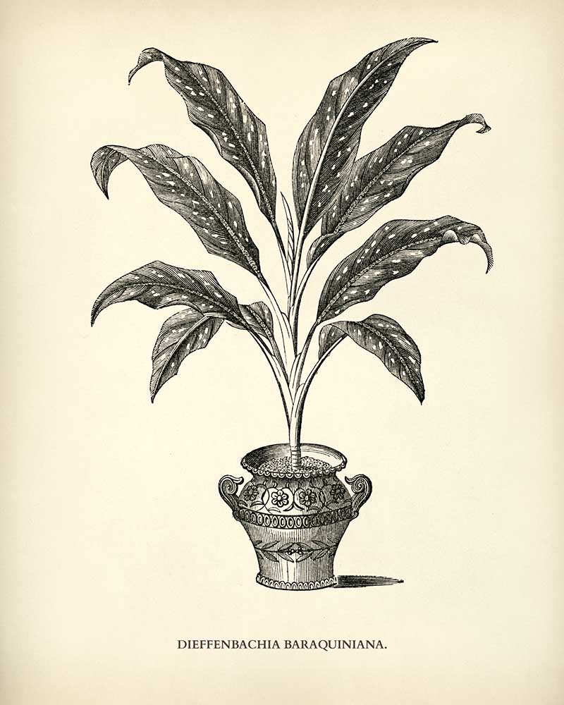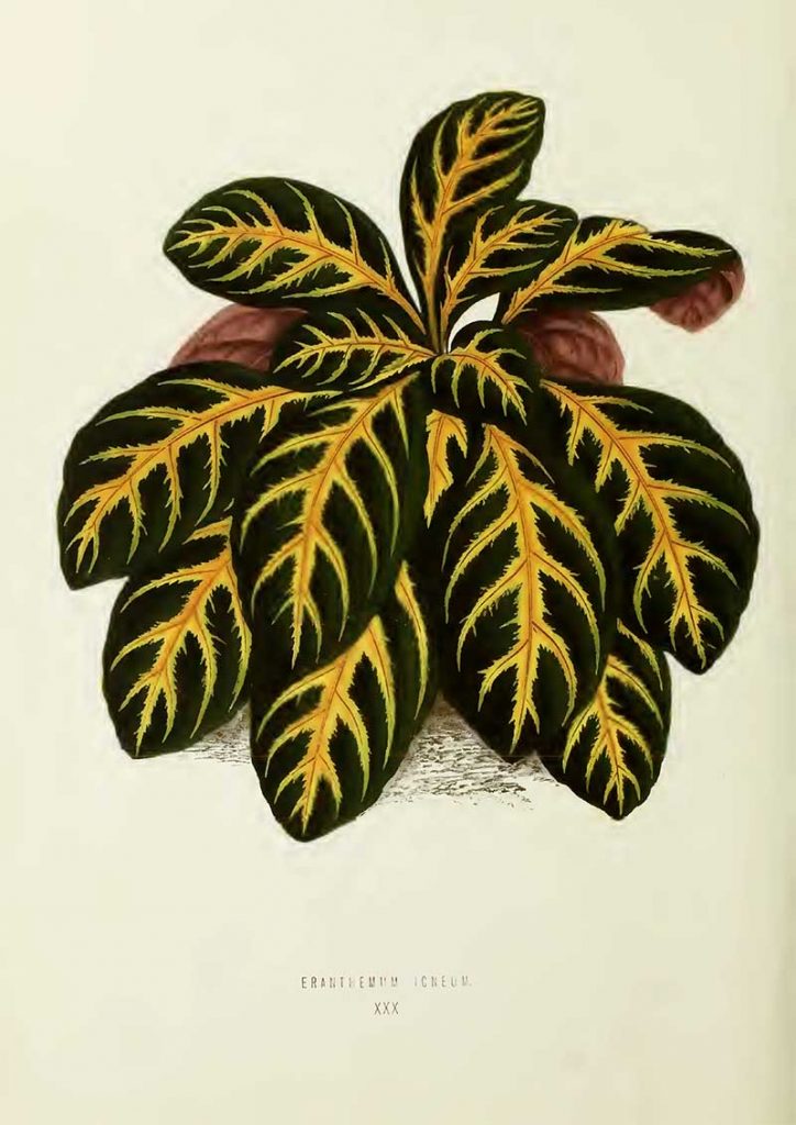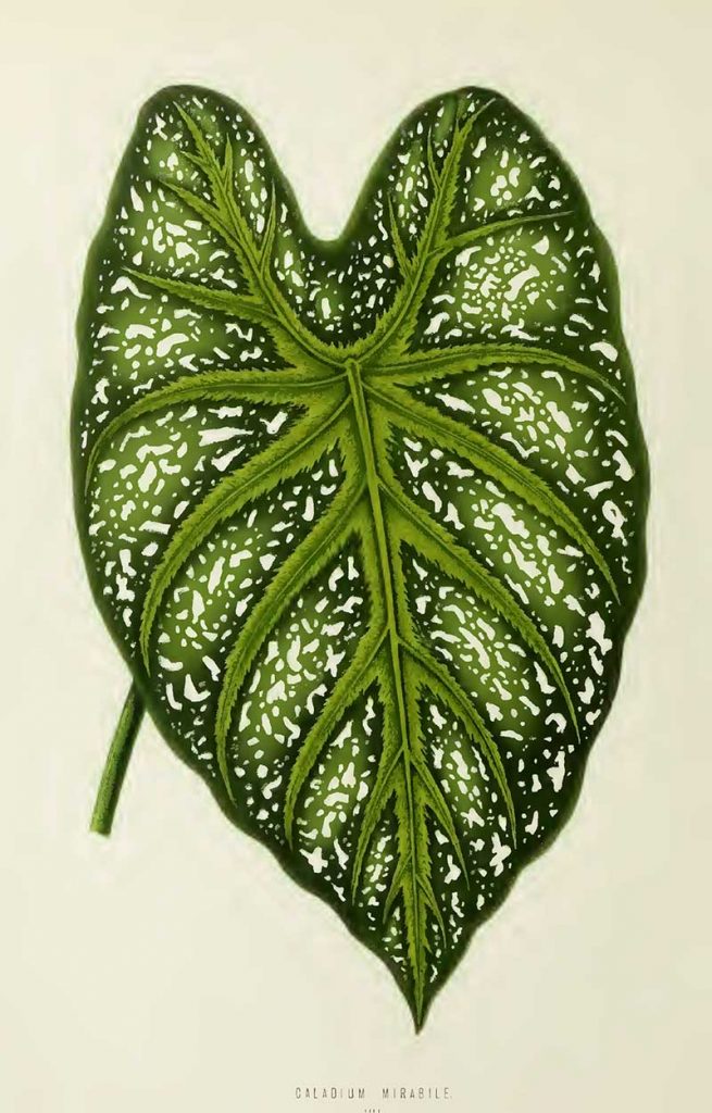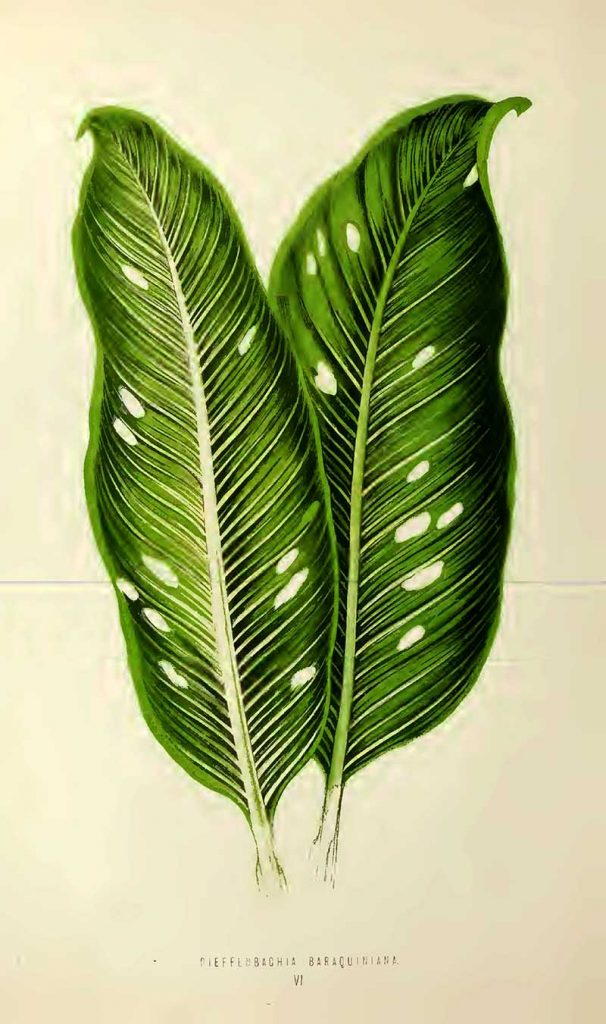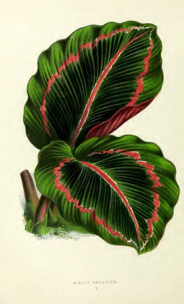 All these wonderful tropical house plant drawings are from the book with a rather lengthy title. ” New and rare beautiful-leaved plants: containing illustrations and descriptions of the most ornamental-foliage plants not hitherto noticed in any work on the subject.”