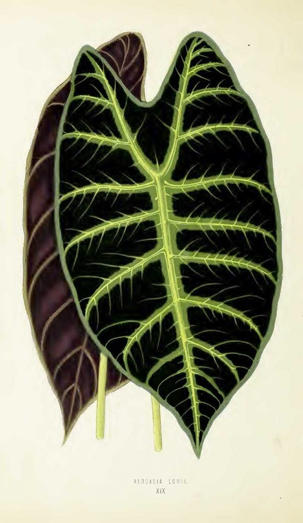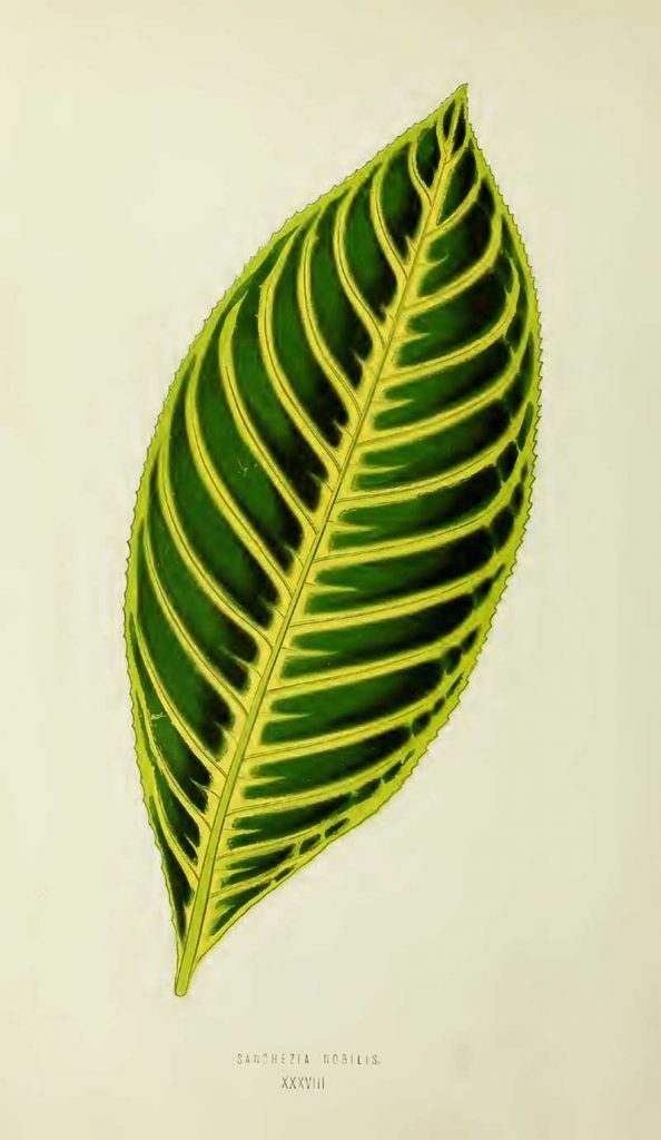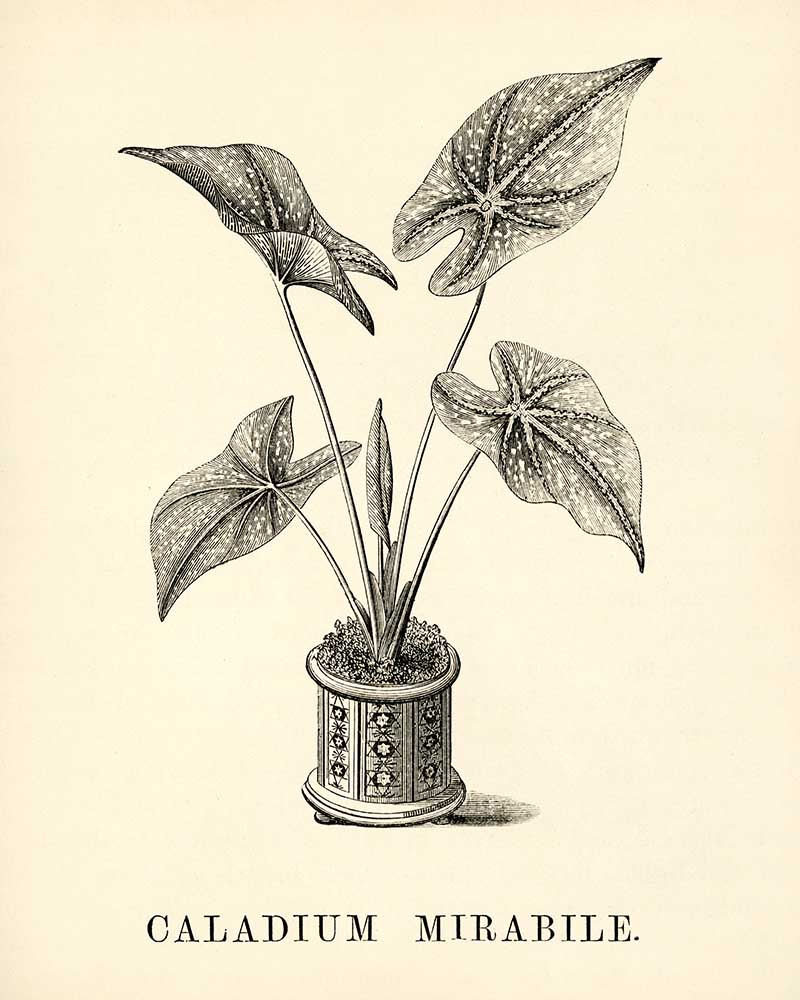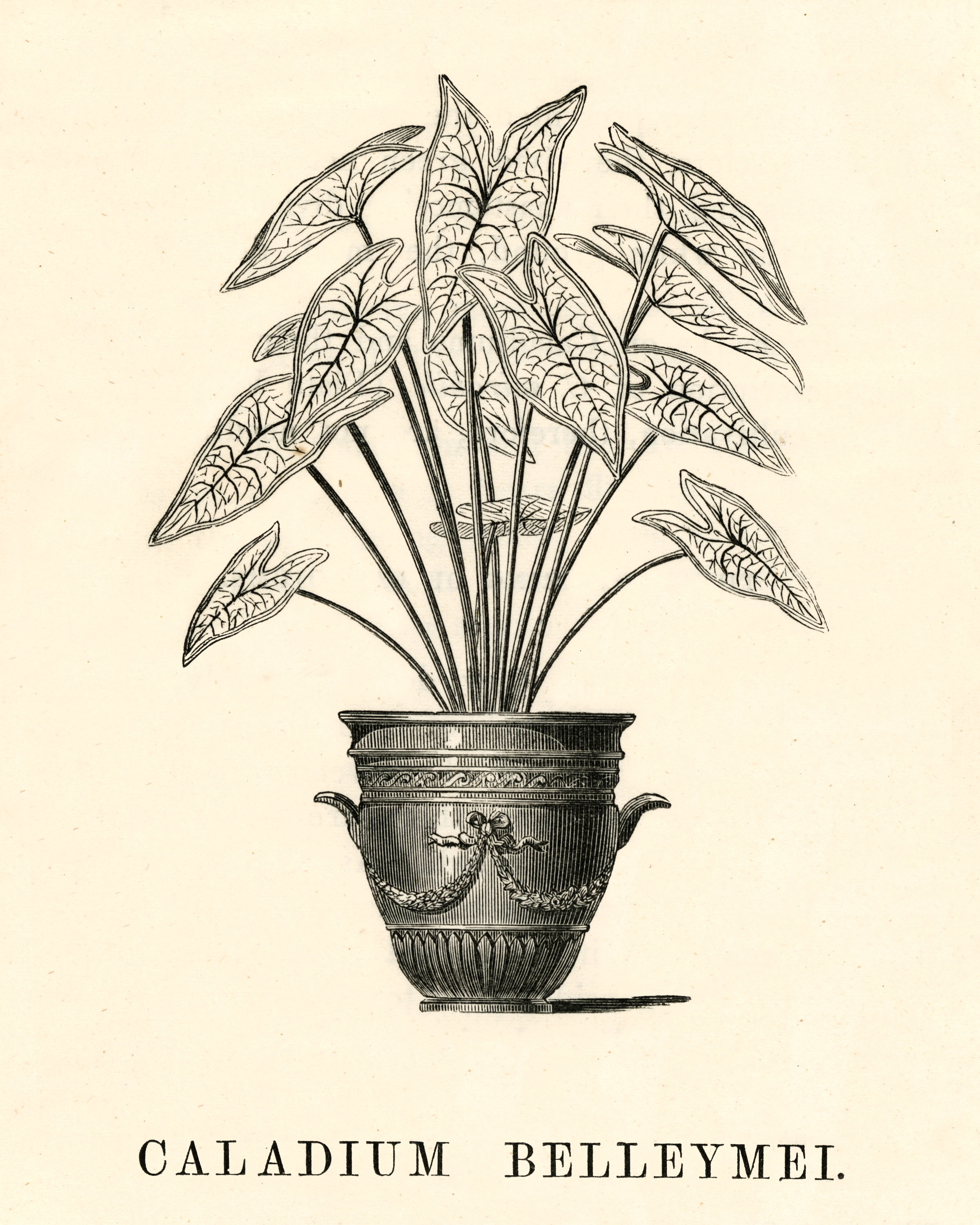 All these wonderful tropical house plant drawings are from the book with a rather lengthy title. ” New and rare beautiful-leaved plants: containing illustrations and descriptions of the most ornamental-foliage plants not hitherto noticed in any work on the subject.”
