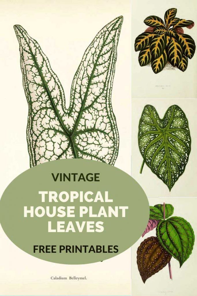 First, there is a collection of colorful tropical leaf prints of house plants from the book above. The next section will include black and white drawings of some of these house plants in pots.