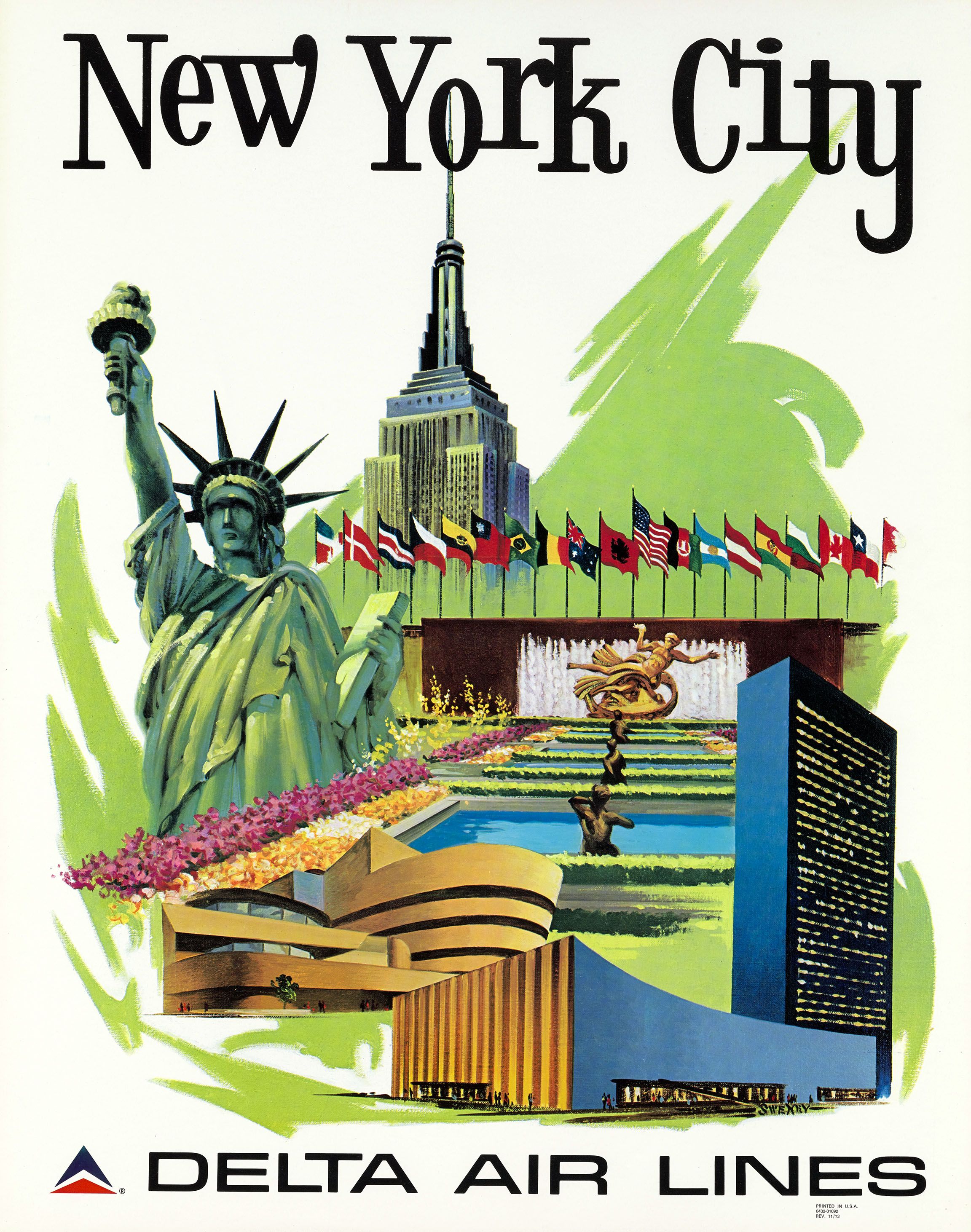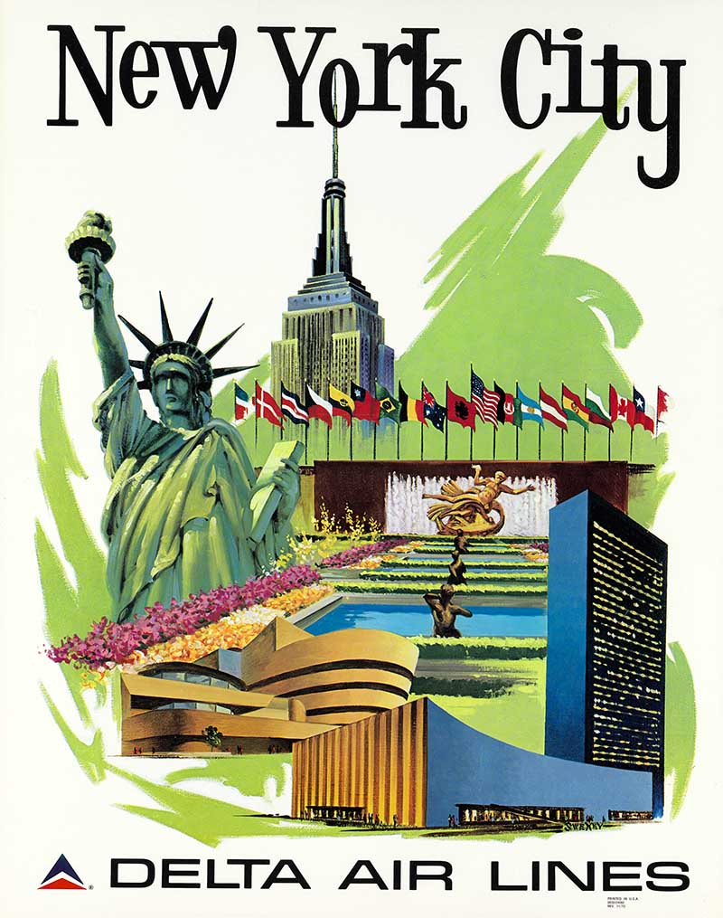A 1960s Delta in New York Ad. Delta is one of the major airlines of the United States and a legacy carrier. It was founded in 1925 and is headquartered in Atlanta, Georgia.