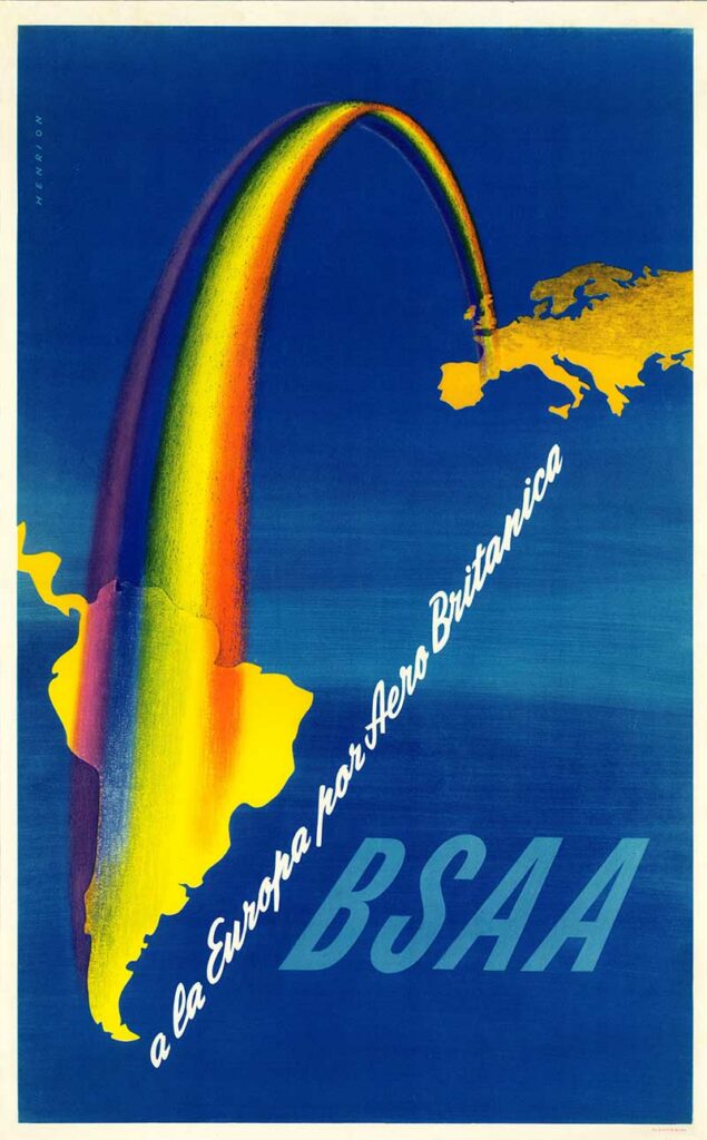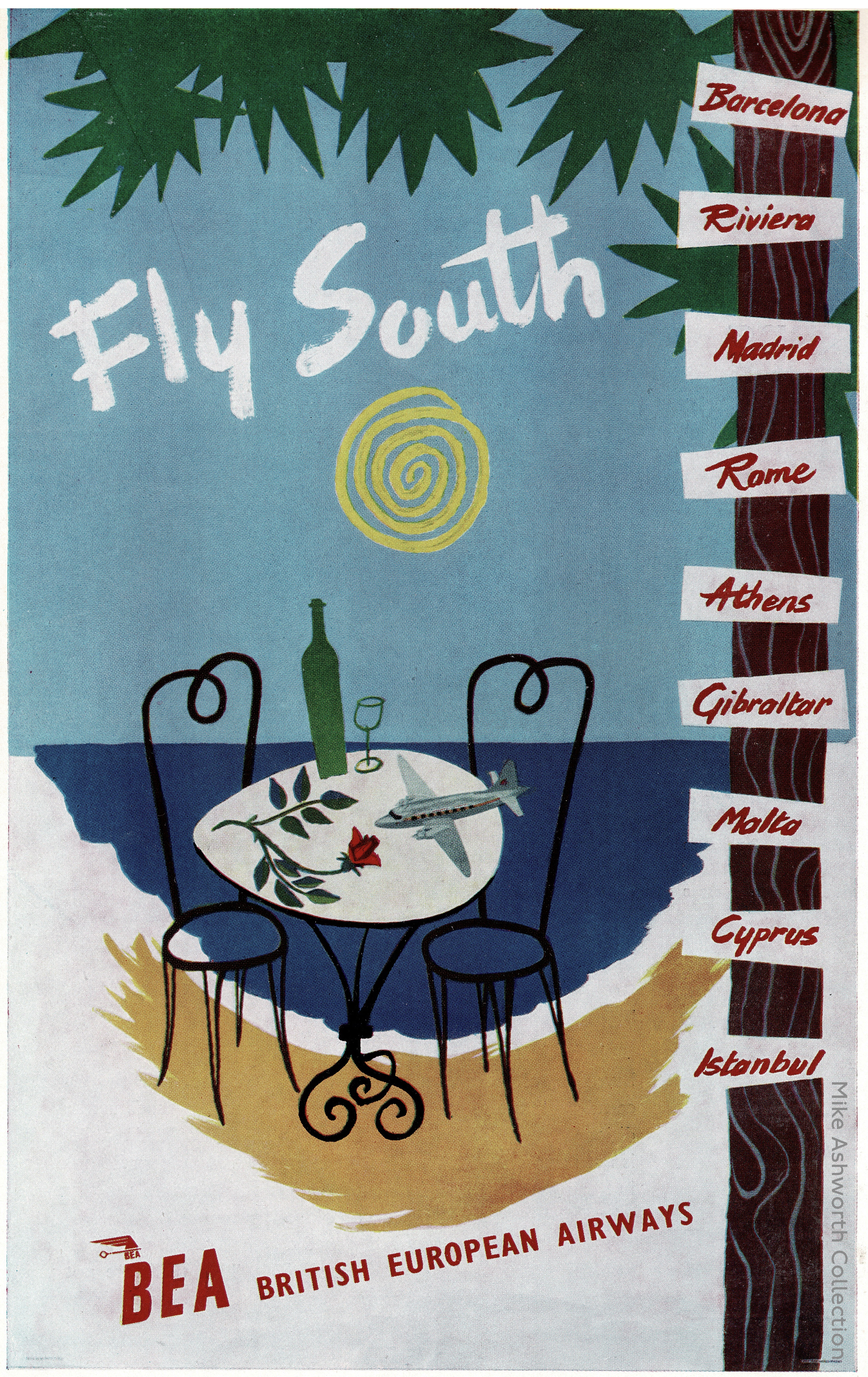 British European Airways (BEA), formally was a British airline that existed from 1946 until 1974. IT merged with BOAC to form the national carrier British Airways—a 1951 poster by Geoffrey Salter.