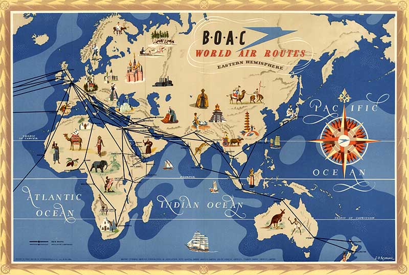 A BOAC World route map of the Eastern Hemisphere dated 1951.