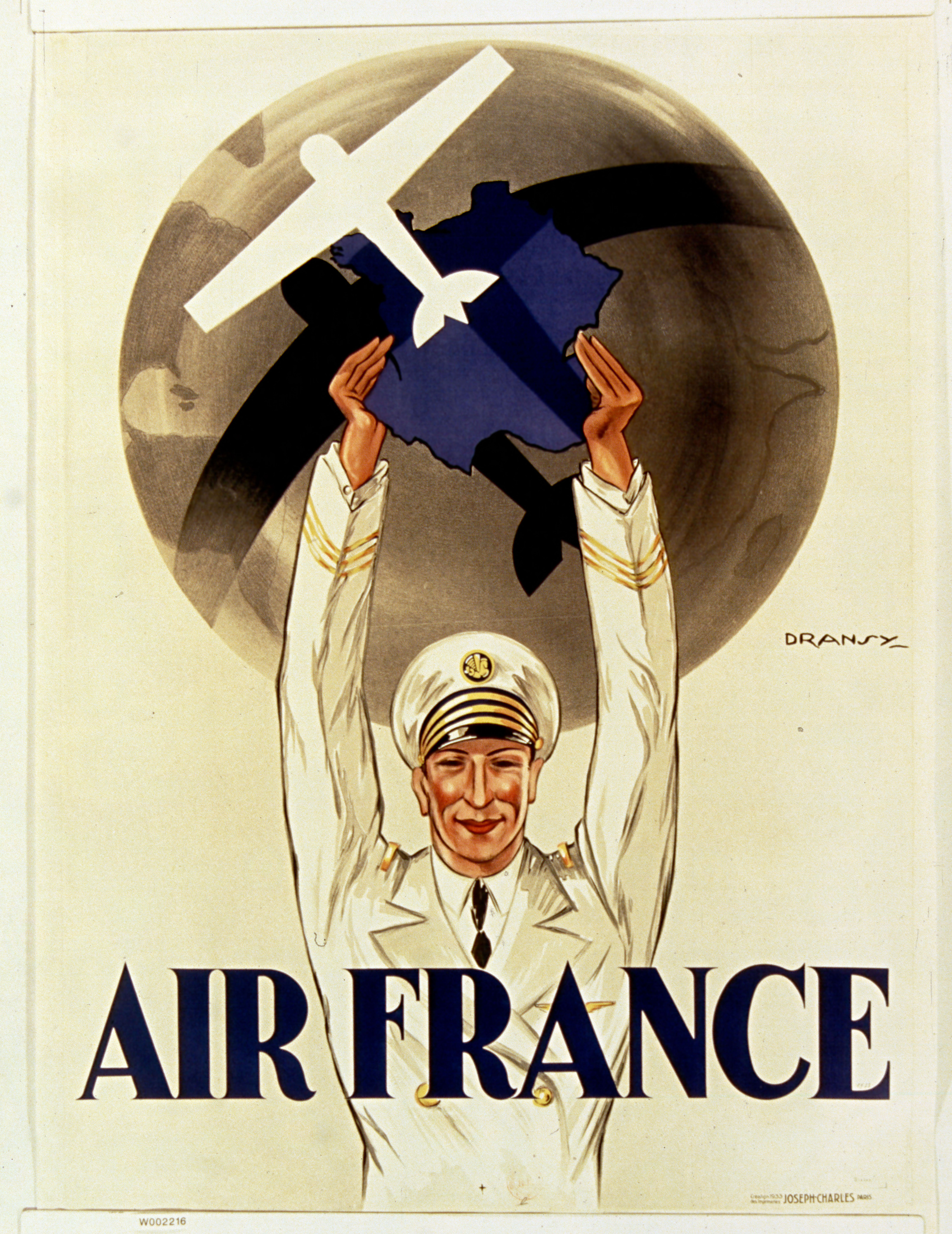 A beautiful advertising vintage airline poster map for the airline. The French naval officer and painter Luc-Marie Bayle designed the map.